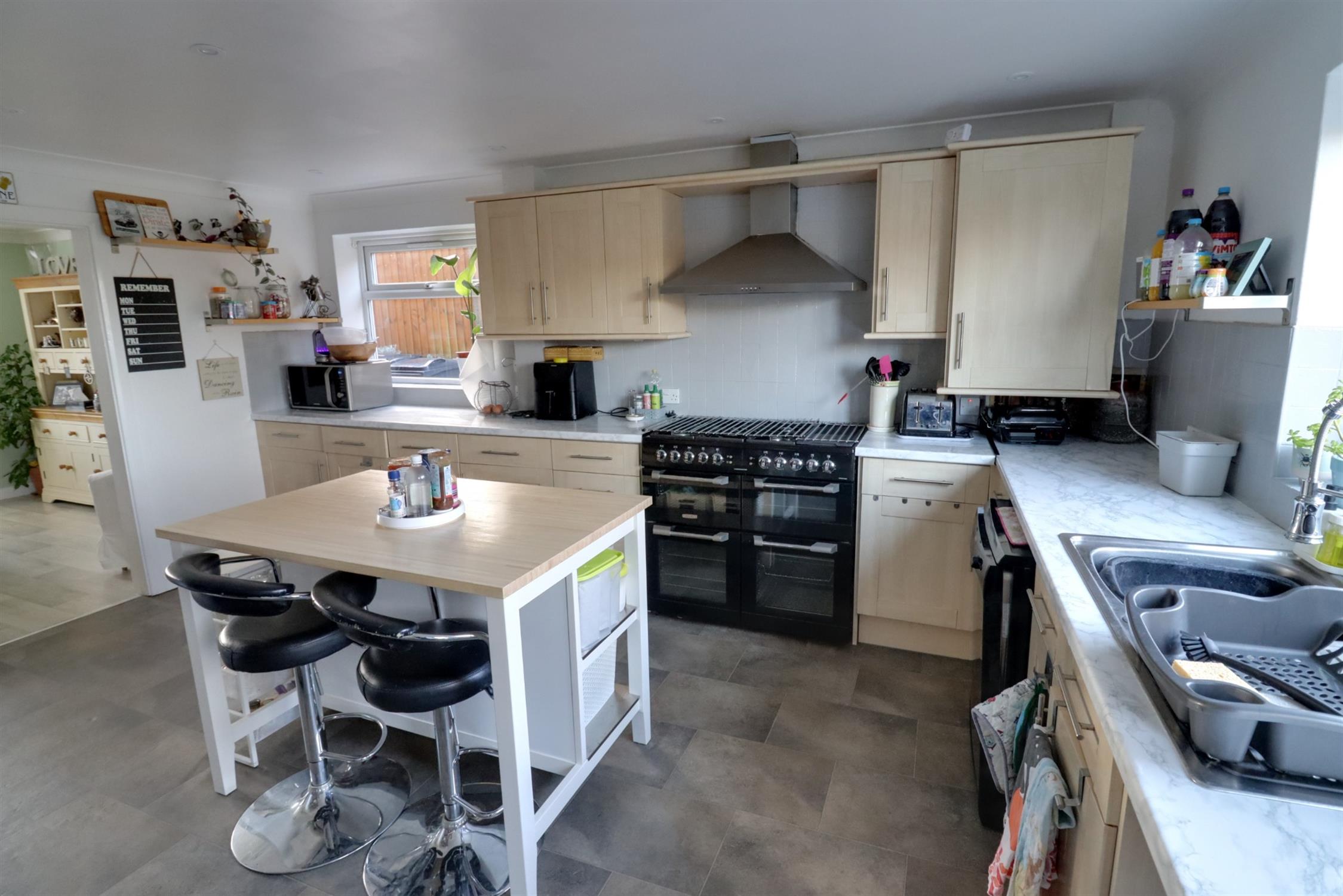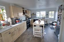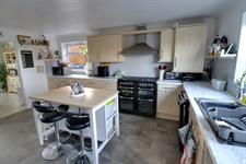 Double glazed windows to rear and side, double glazed door to rear garden. Matching range of wall and base units with roll top work surfaces, stainless steel single drainer sink unit with flexi hose mixer tap, dual fuel range style cooker, overhead extractor, plumbing and space for dishwasher, tiled splash backs, space for tall fridge/freezer, understairs storage cupboard. Open archway to:
