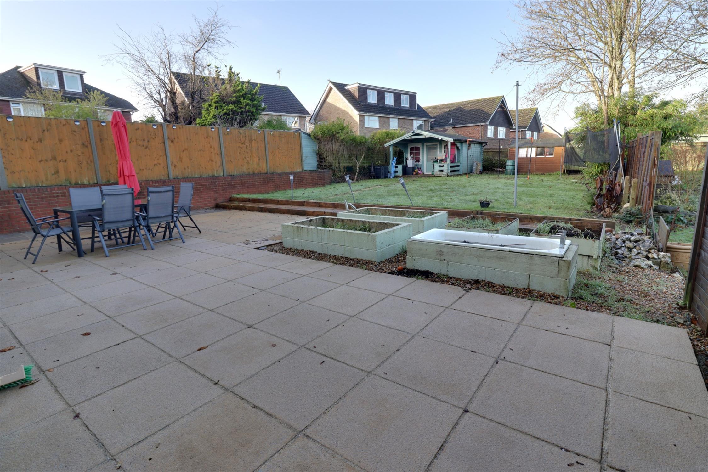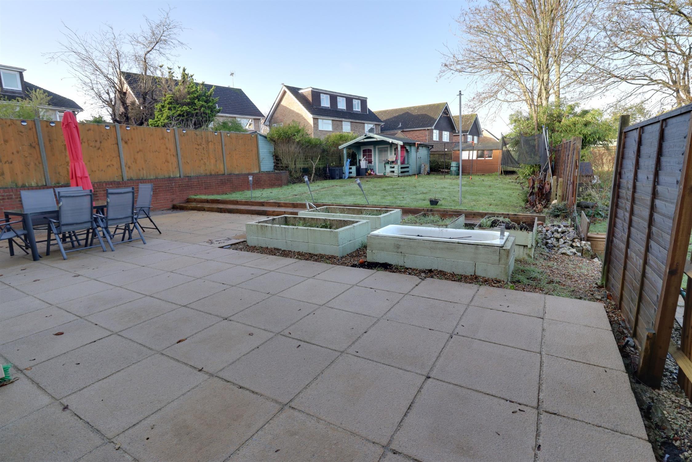 The front of the property has an area of off road parking for up to four vehicles. The large westerly facing rear garden is enclosed by timber panel fencing with paved patio and is mainly laid to lawn, detached summerhouse with power and light, timber shed, outside tap, external power sockets and security lights.