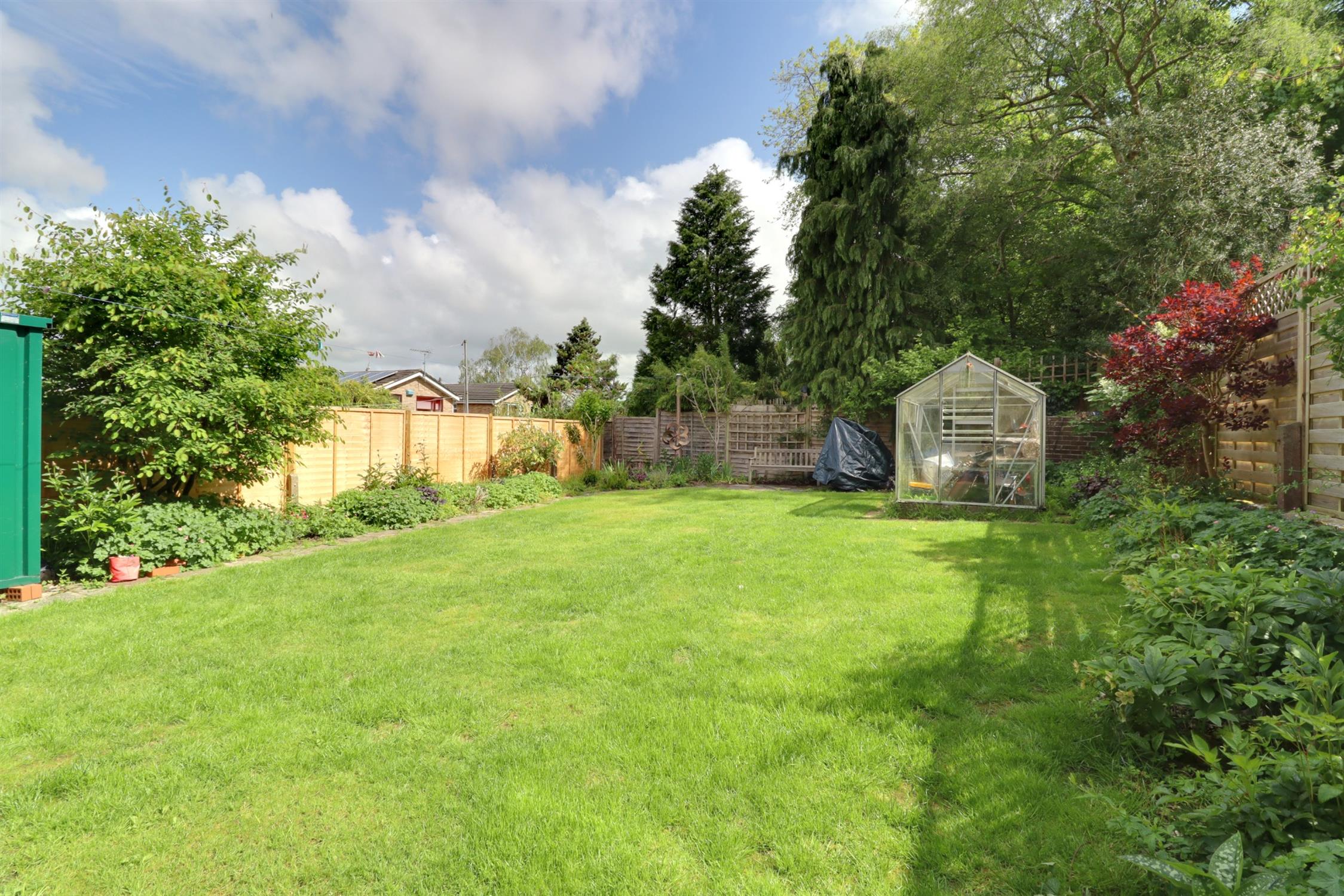 Timber fence panel enclosed, mainly laid to lawn with paved pathway, greenhouse, two coal bunkers, outside tap, gated side access to front.