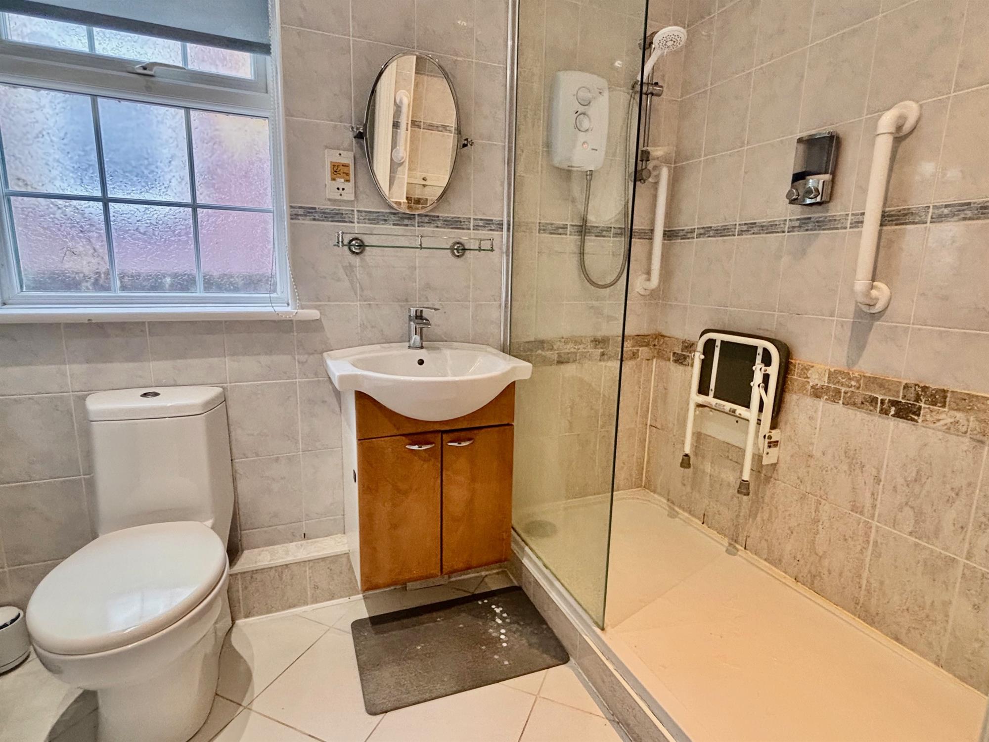 Double shower, toilet and basin with vanity unit