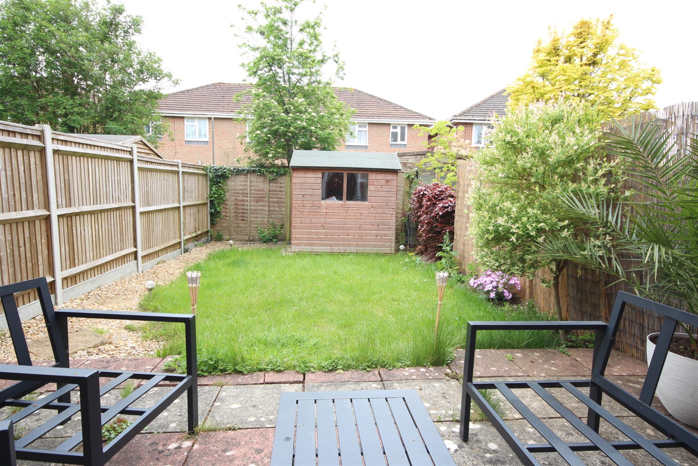 GARDEN: Small area to the front and a rear garden with lawned area, patio and shed.