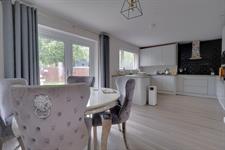 This superbly appointed room is impressive in size and benefits from a separate dining area with double glazed, double doors leading to the rear garden as well as courtesy door to side elevation. The kitchen is fitted with a contemporary range of eye and base level units to include single drainer stainless steel sink unit with mixer tap. Integrated dishwasher. Built-in oven with hob and extractor hood over. Integrated fridge/freezer. Floor mounted kick space heater. Double glazed windows to rear elevation. Wood effect waterproof luxury vinyl plank flooring.