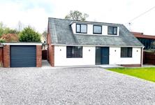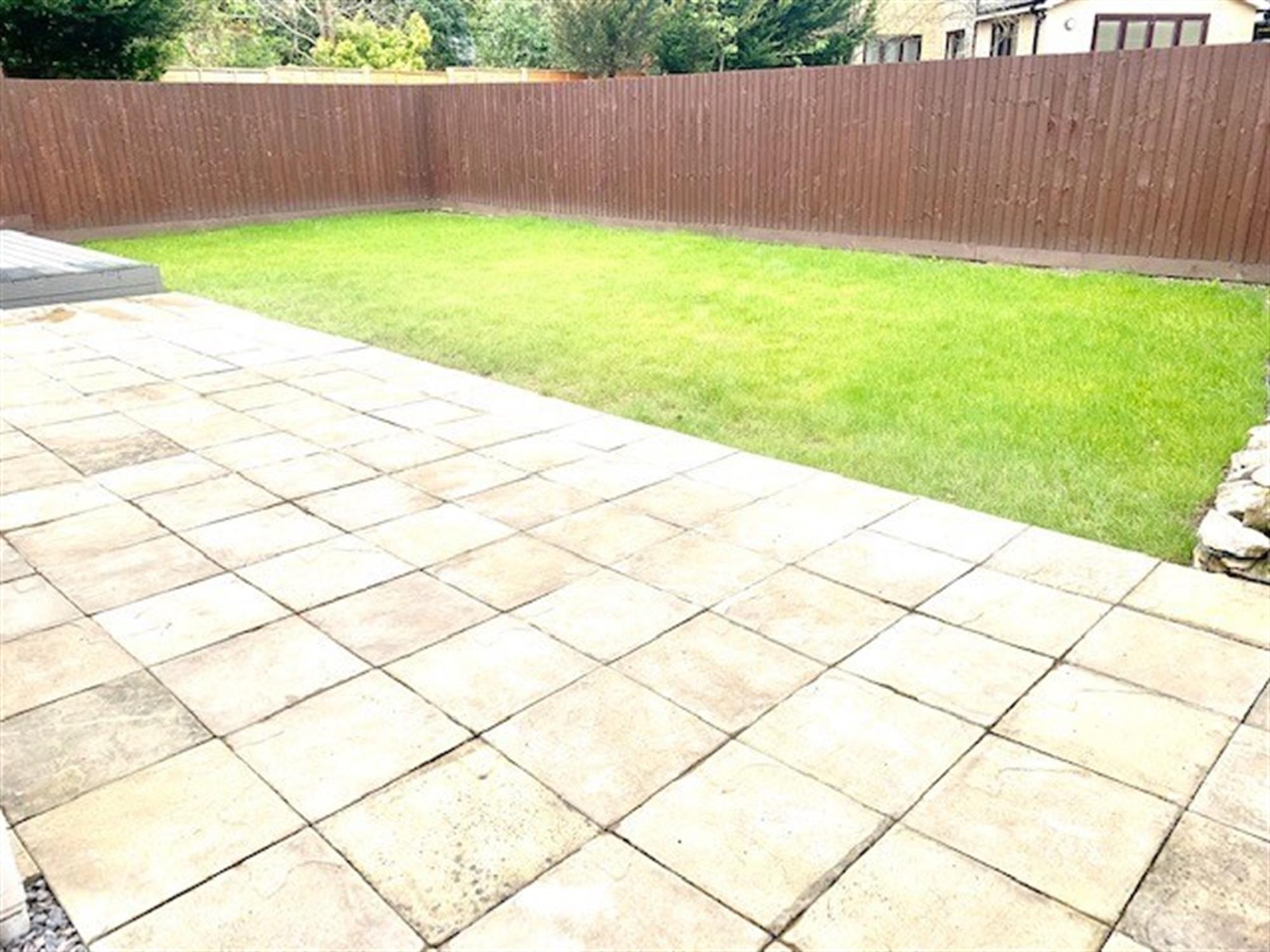 The front garden has an extensive driveway providing parking for multiple vehicles. The garden is mainly laid to lawn with fence enclosures.