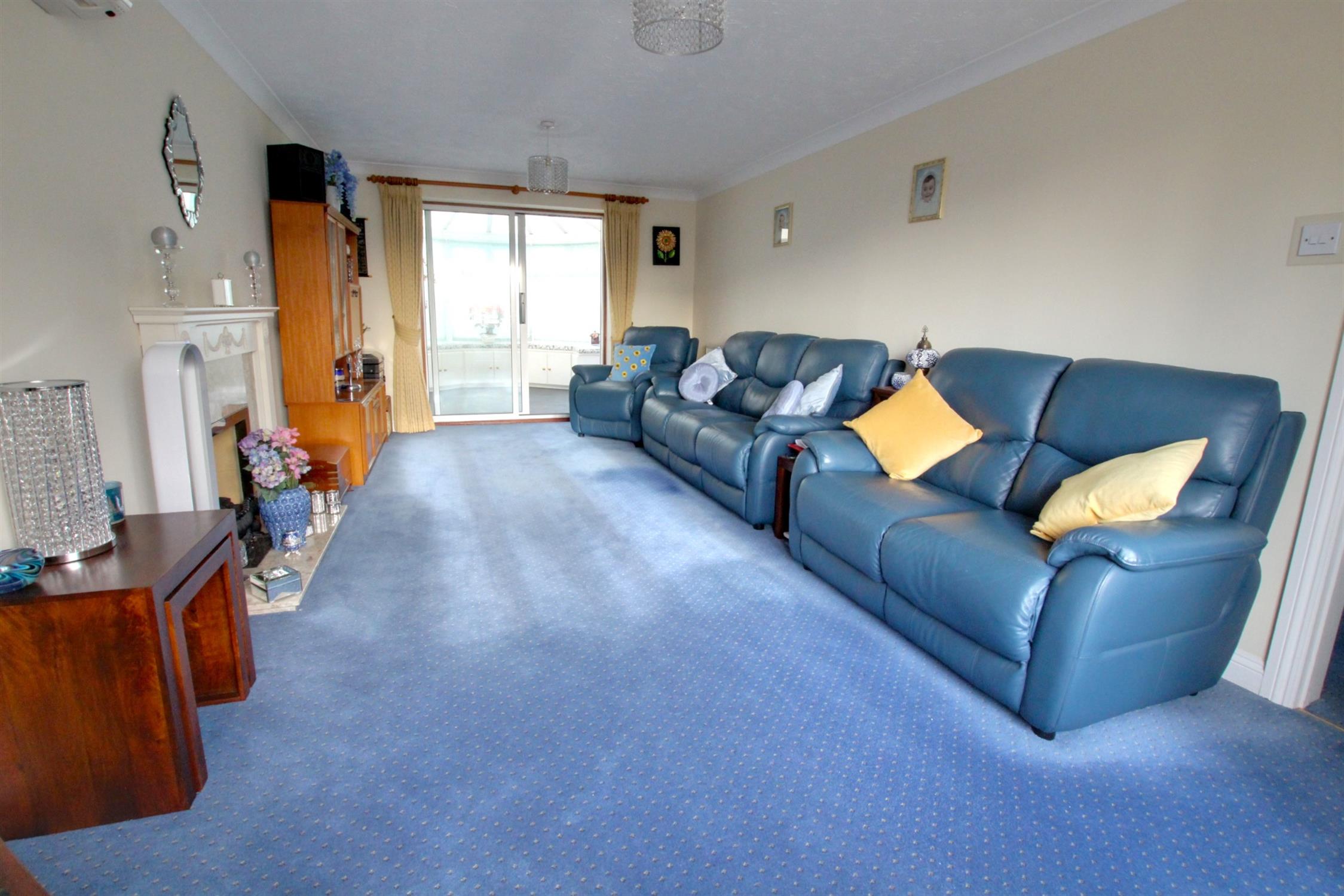 Spacious room, window to front aspect with radiator underneath, tv point, gas fireplace with flame effect, multiple power points, additional radiator to back of lounge, sliding door leading to