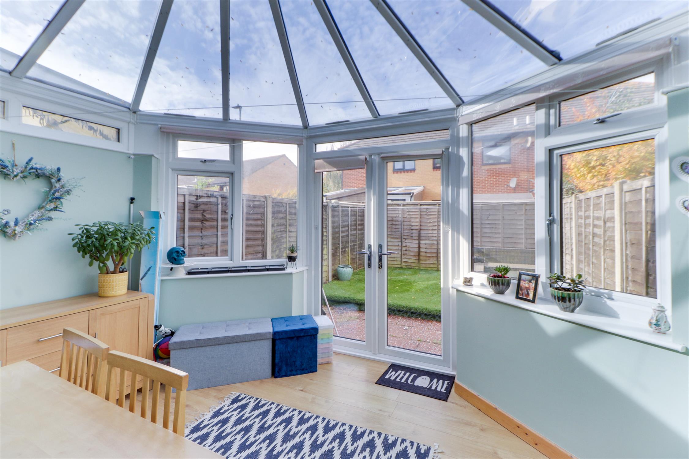 Offered in excellent decorative order, this beautifully presented three-bedroom terraced home enjoys an allocated off-road parking space, modern interior and a westerly aspect rear garden. The ground floor features a bright entrance hall with tiled flooring leading to a contemporary fitted kitchen with gloss-fronted units and marble-effect work surfaces. To the rear, the spacious lounge offers a comfortable living space with doors opening into the conservatory, which provides an excellent additional reception area overlooking the garden.