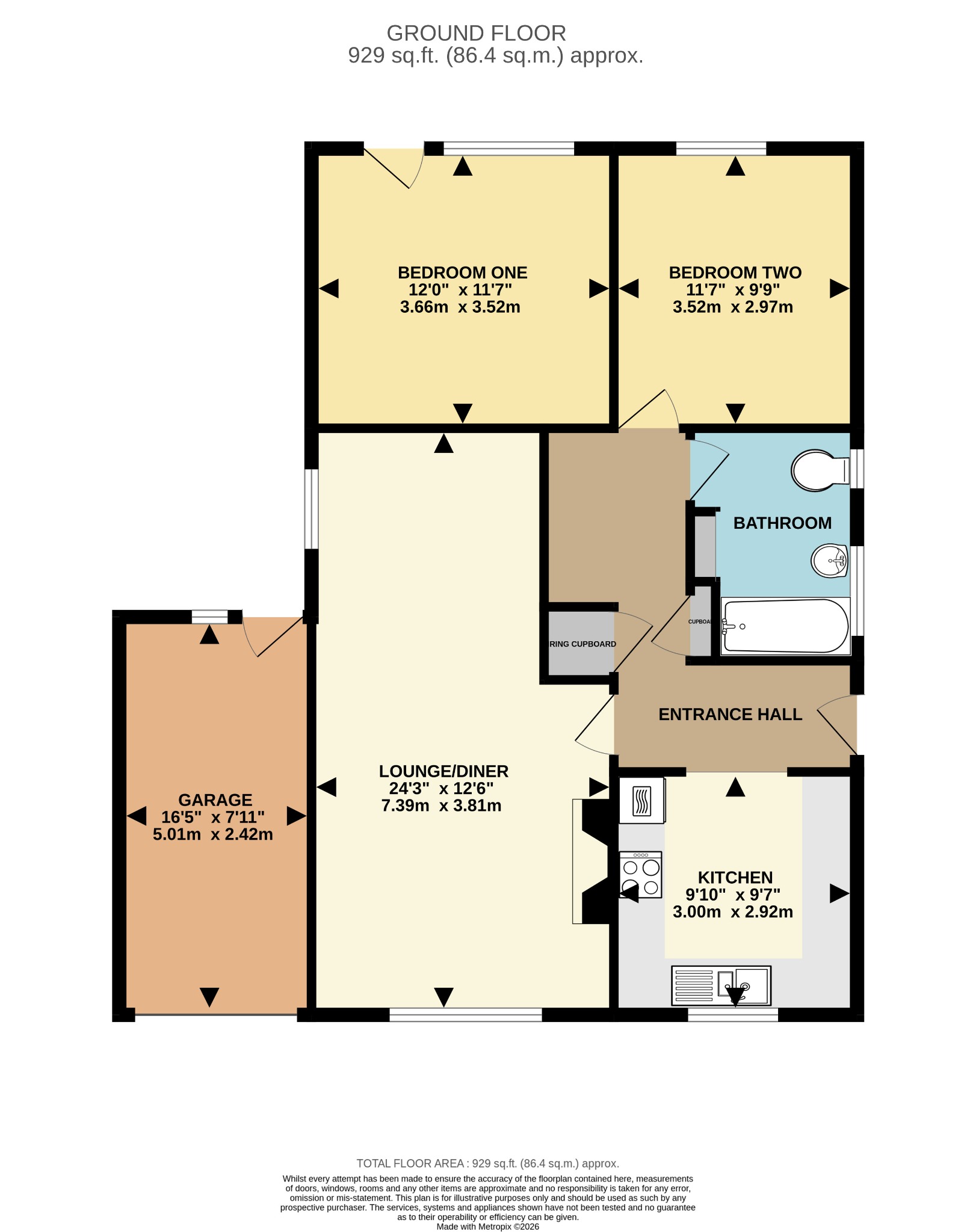 Remotely operated concertina door, power and light, window to rear, double glazed door to rear garden.
