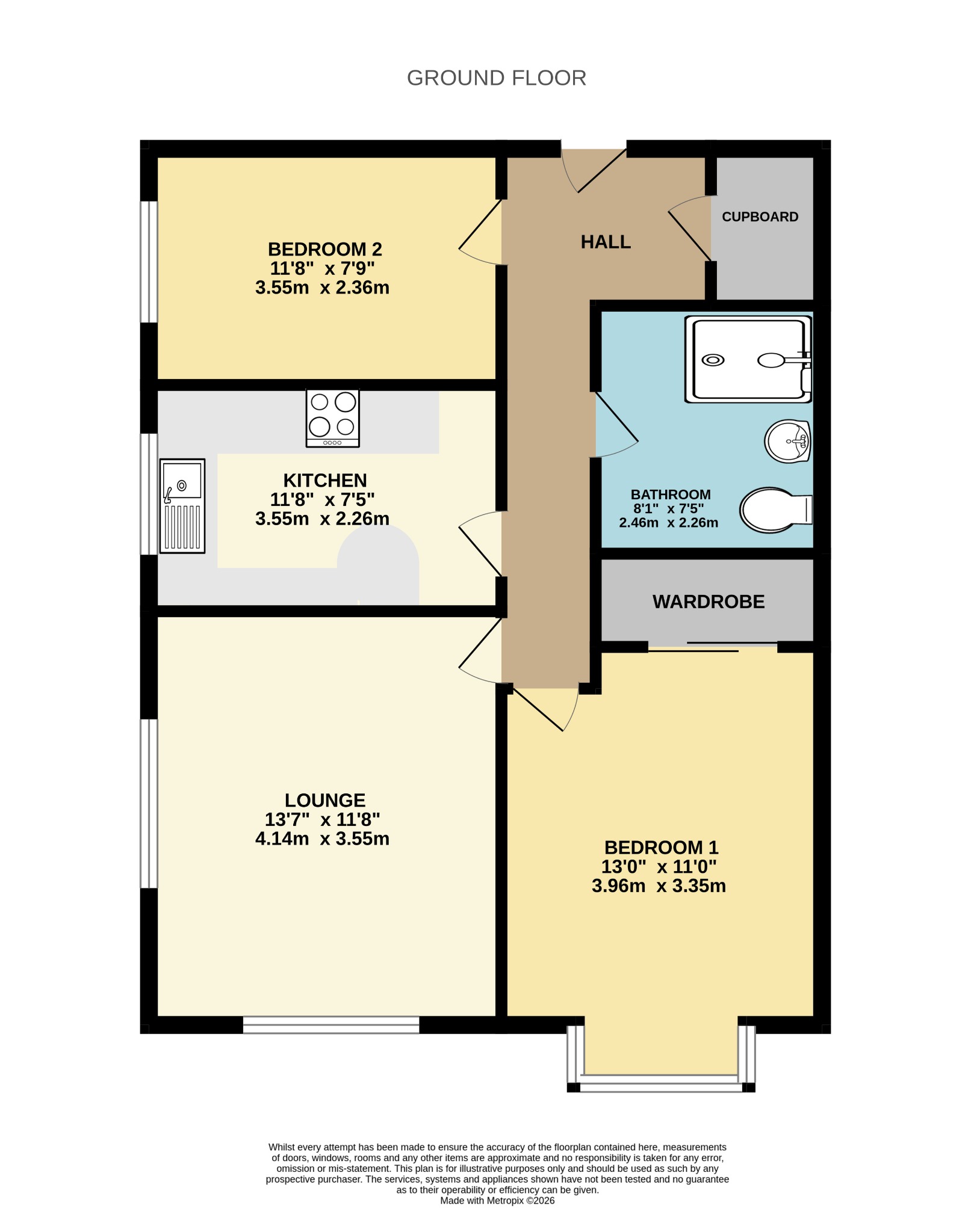 Dual aspect double-glazed windows with fitted shutters, tv point, telephone point, wall mounter heater.