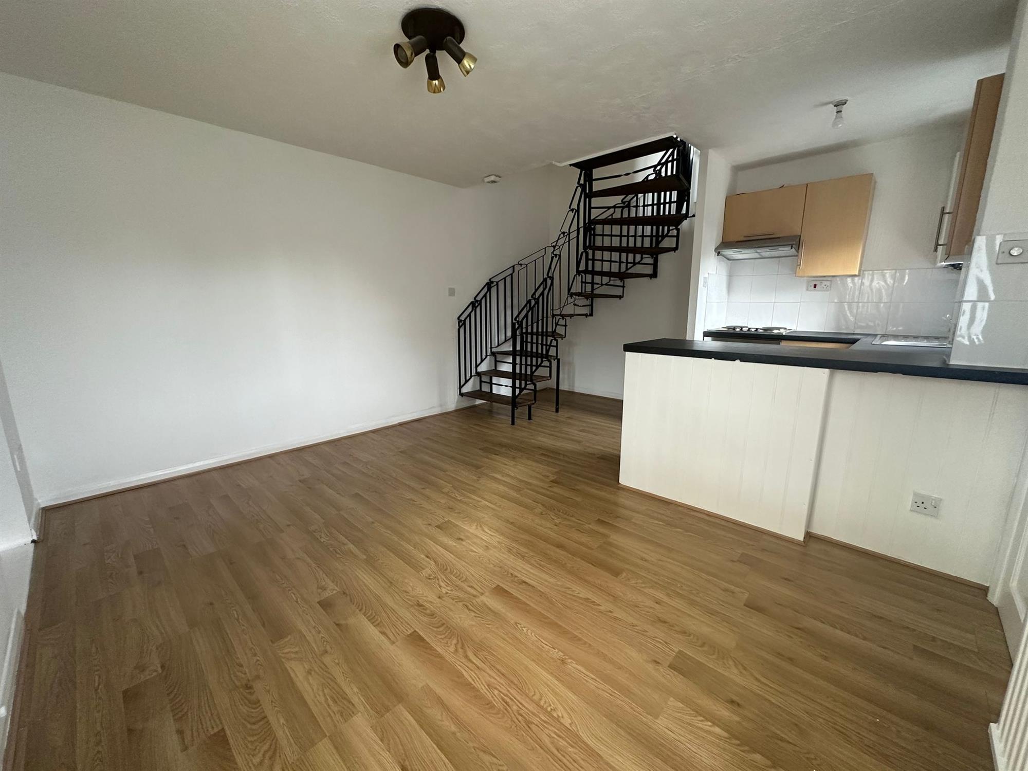 OPEN PLAN KITCHEN/ LIVING AREA - With spiral staircase to top floor. Fitted kitchen units with electric oven & hob and extractor hood. Boiler.