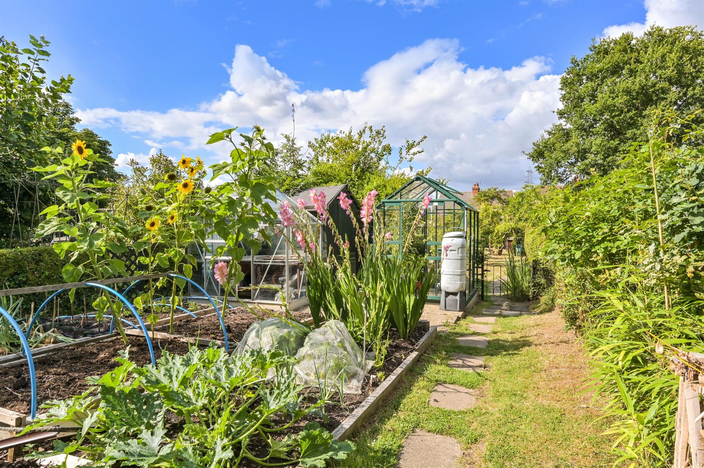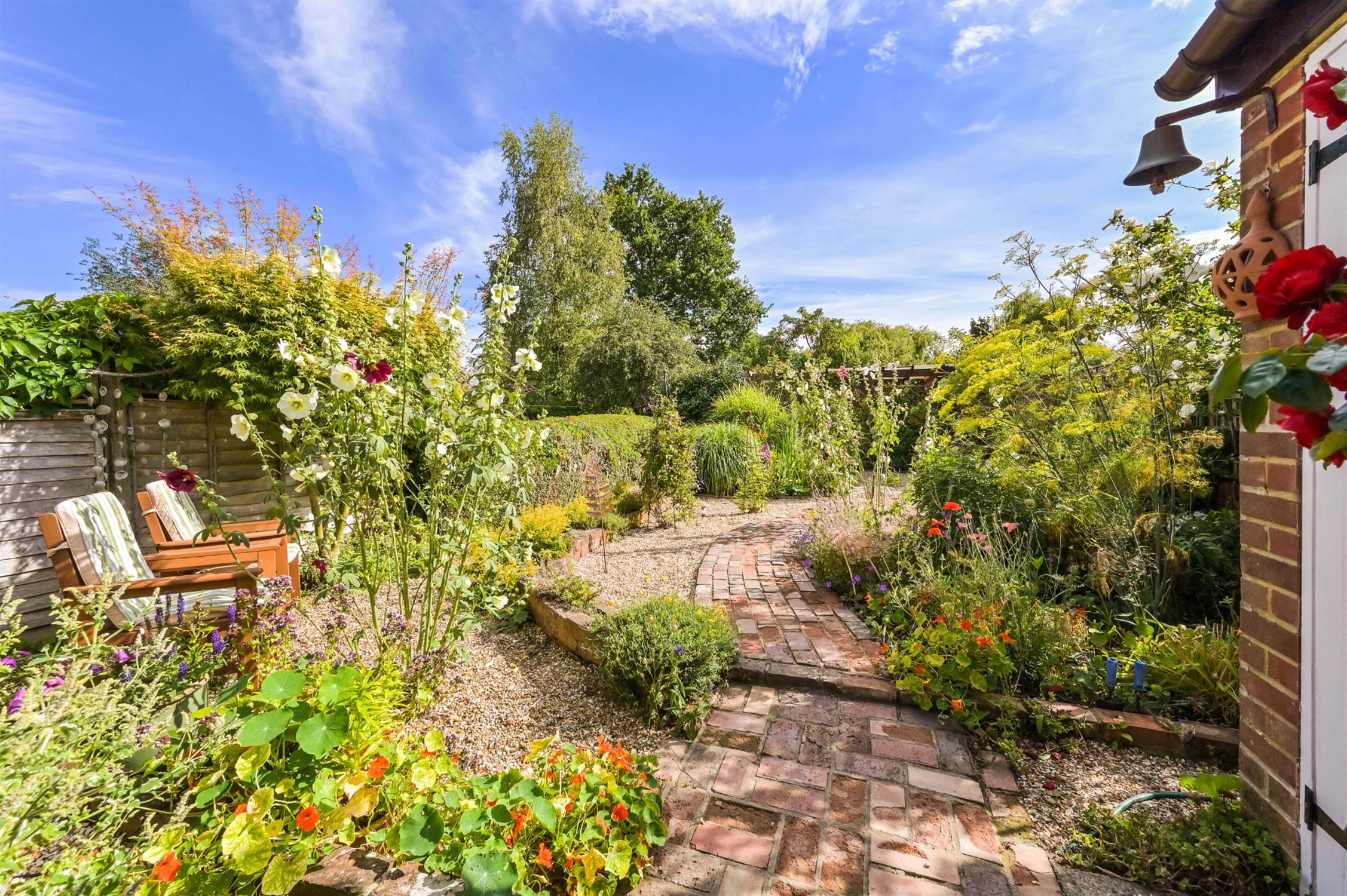 The gardens extend to the front and the rear of the property, amounting in total to approximately 0.18 of an acre. There is a good sized frontage to the property which provides for ample driveway parking. A side access gate leads, alongside the property to the rear. The rear garden is a great size and is a particular feature of the property, being beautifully landscaped in a lovely traditional cottage garden style. Well stocked with established planting, borders, shrubs, fruit trees and vegetable gardens. There are two greenhouses and garden sheds, with electricity. Sheltered paved pergola and paved terrace to the rear of the house.