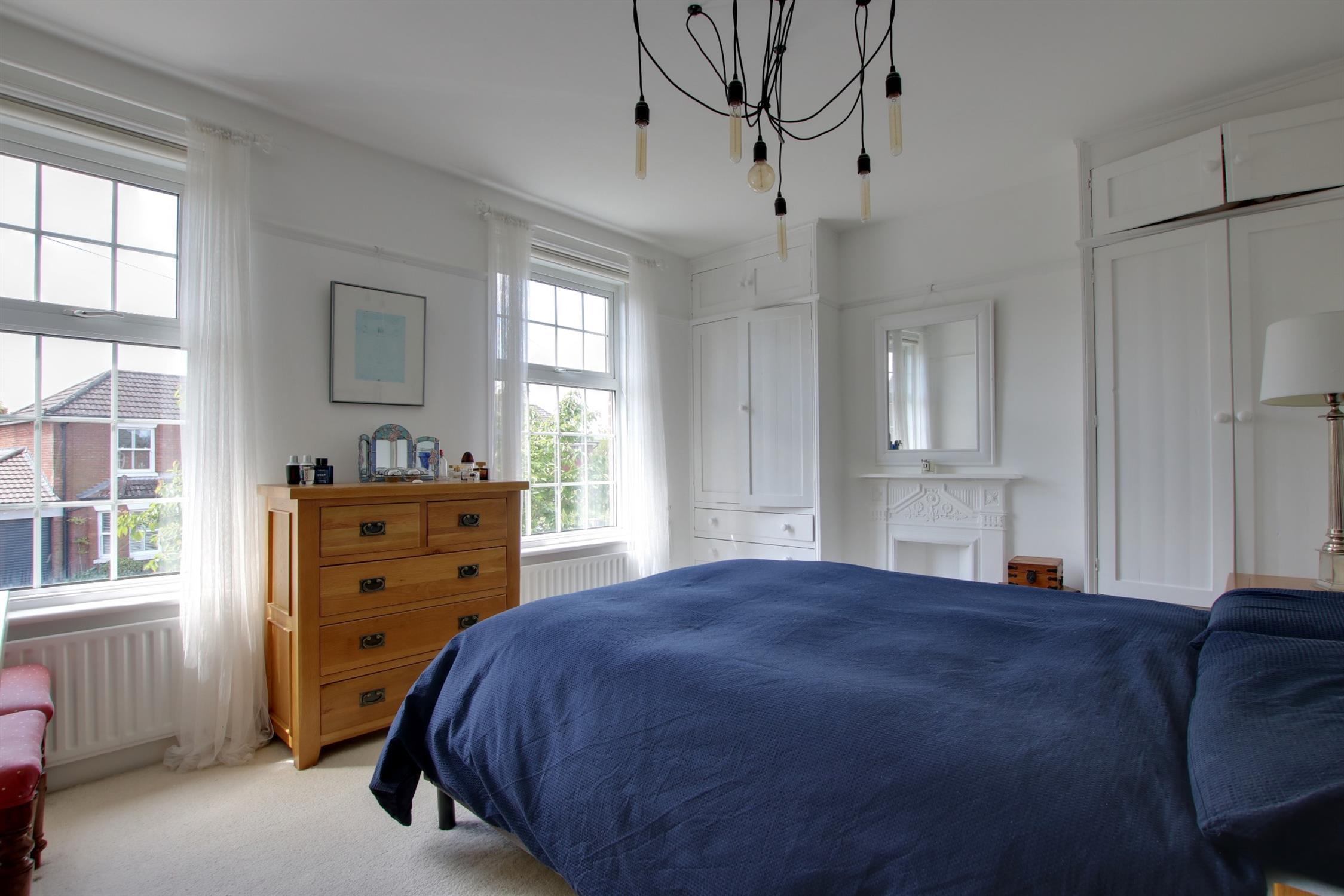 Two double glazed windows to front elevation. Chimney breast with feature cast iron fireplace. Two wardrobes with chests of drawers built-into chimney breast recess. Radiator. Dado rail.