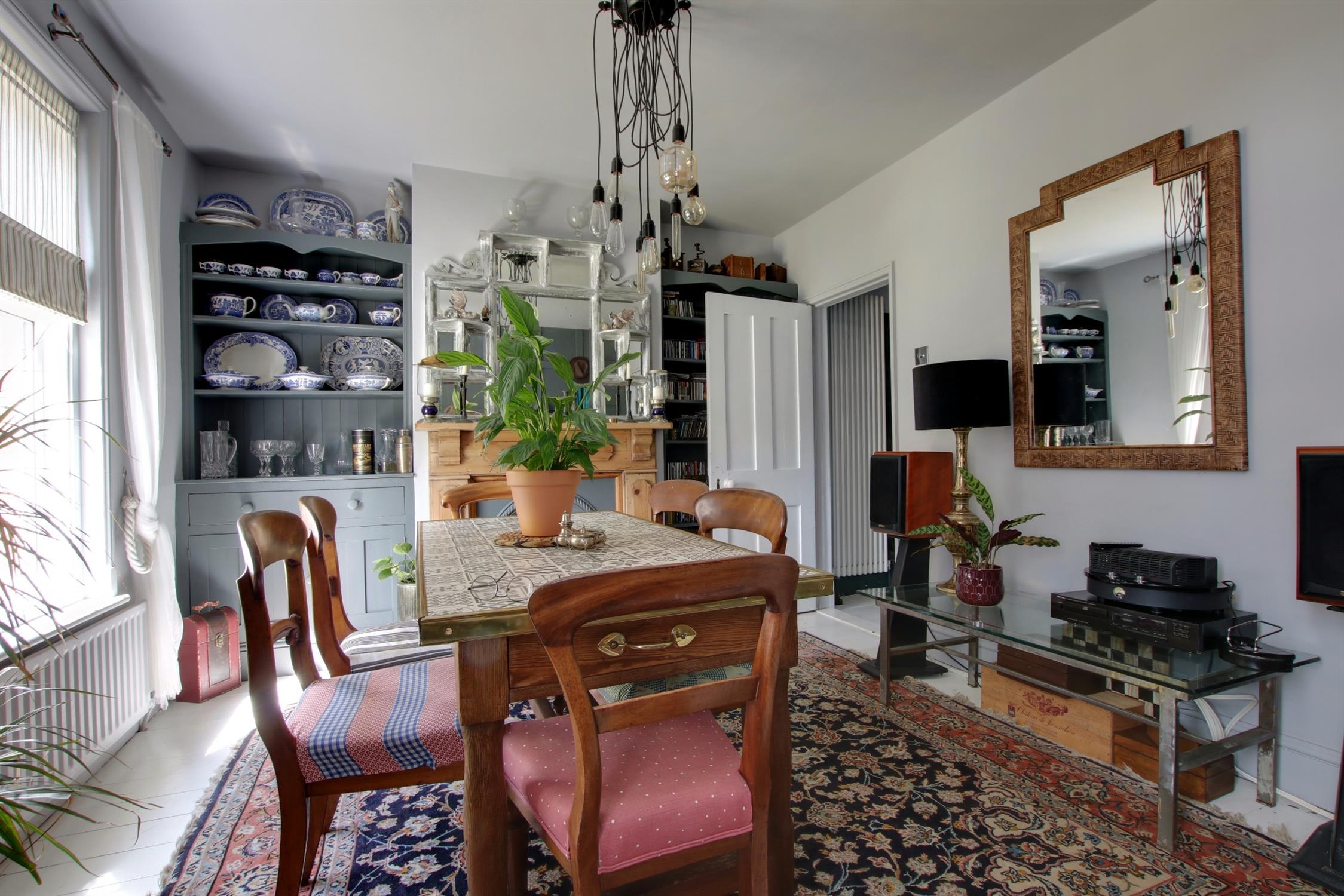 Stairs to first floor. Double glazed window to rear elevation. Chimney breast with multi-fuel stove sat on a brick hearth. Shelving. Picture rail. Column and vertical radiators. Door to: