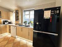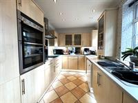 Two uPVC double glazed windows to side aspect, a range of base and eye level units, inset one and a half sink to countertop, tiled splashbacks, integrated electric hob, over hood extractor fan, duel oven and grill, space for dishwasher and fridge/freezer, smooth finish to ceiling with spotlights and coving, door to utility room.