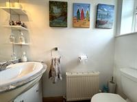 uPVC double glazed window to front aspect, handwash basin with built around storage units, low level toilet, radiator, and smooth finish to ceiling with spotlights and coving