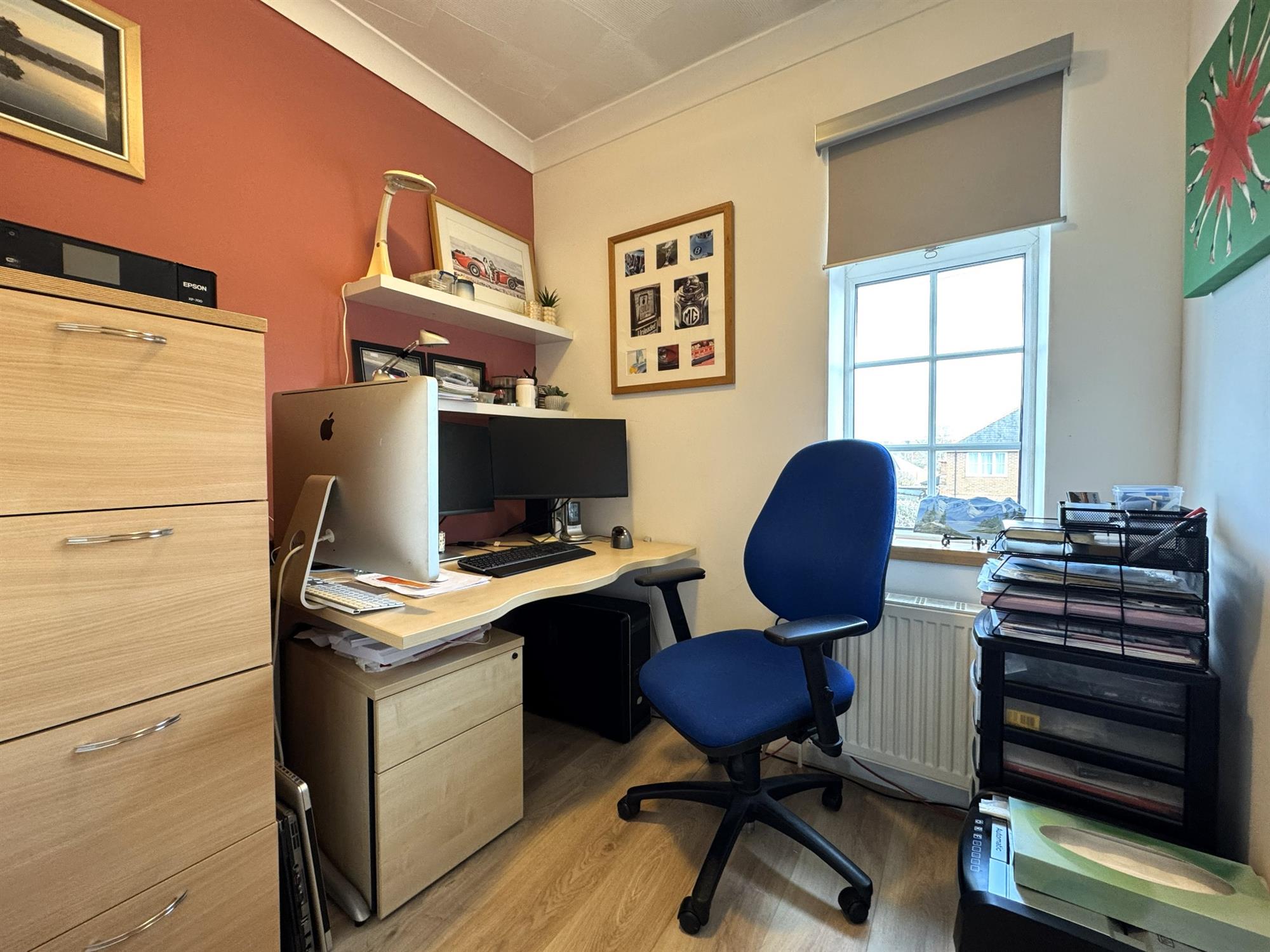 Two uPVC double glazed windows to front and side aspects, built in storage units , radiator, serving hatch to kitchen and smooth finish to ceiling with coving.
