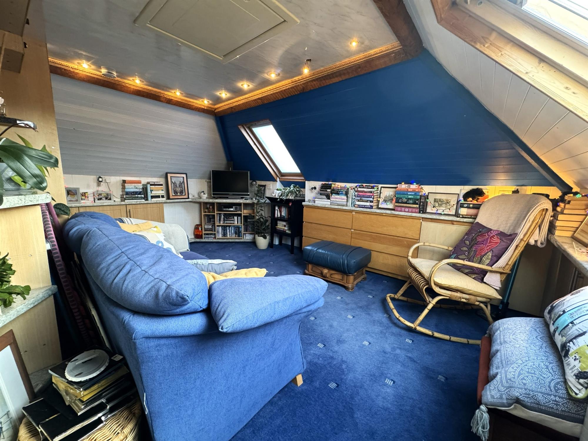 Three double glazed Velux windows to front, rear and side aspects, eaves storage, panelling to ceiling with spotlights