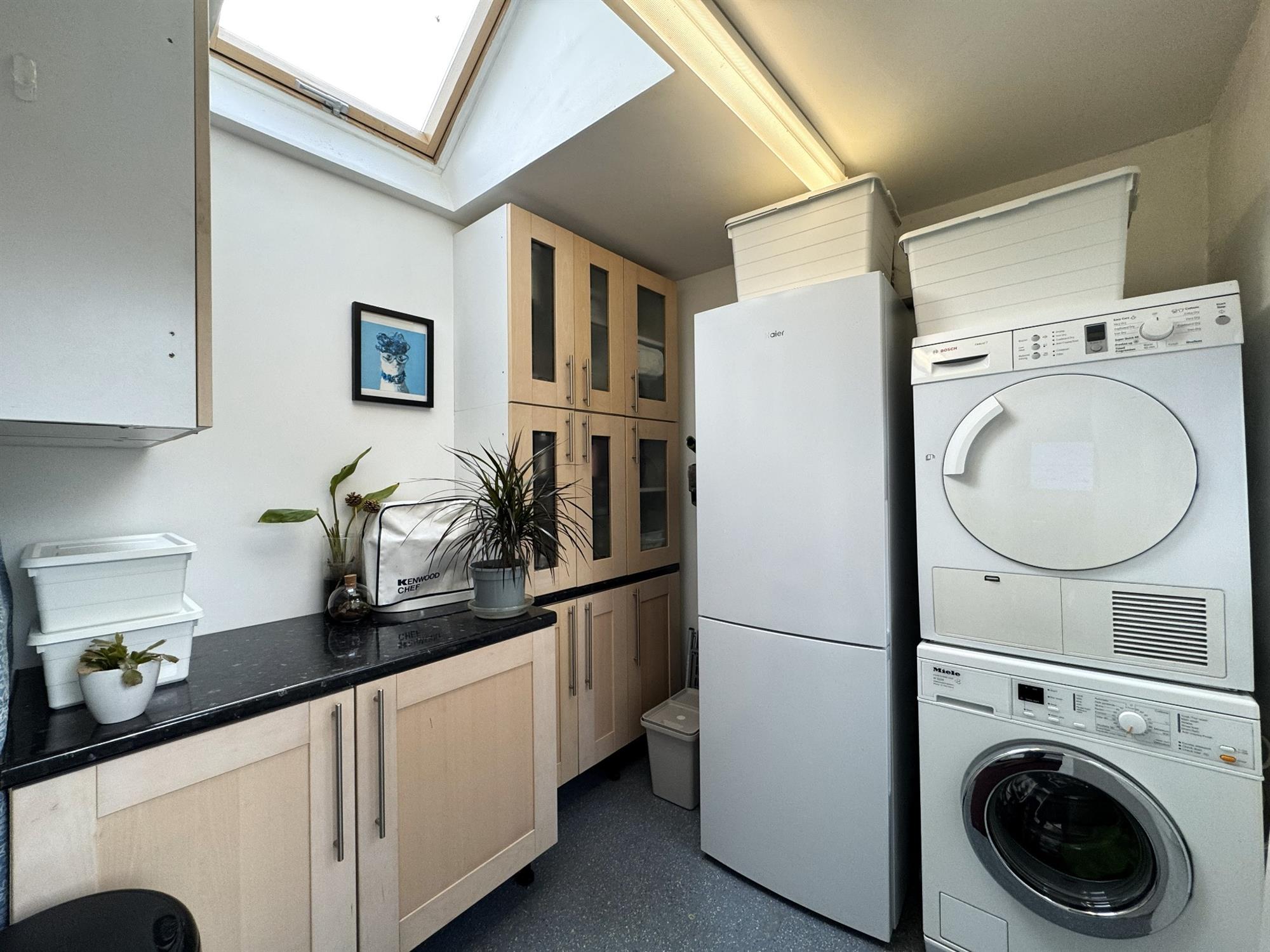 Double glazed Velux window to side aspect, a range of base and eye level units, space for washing machine and tumble dryer, smooth finish to ceiling, uPVC double glazed door to garden