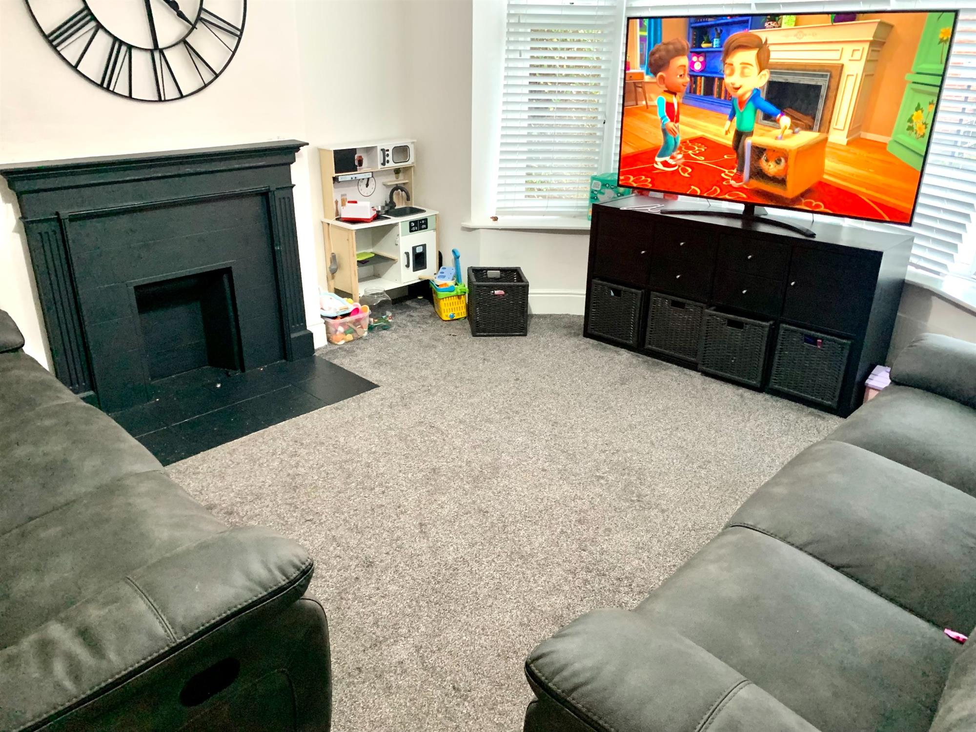 LOUNGEGood size room which is carpeted with bay window facing the front of the property and ornamental fireplace.