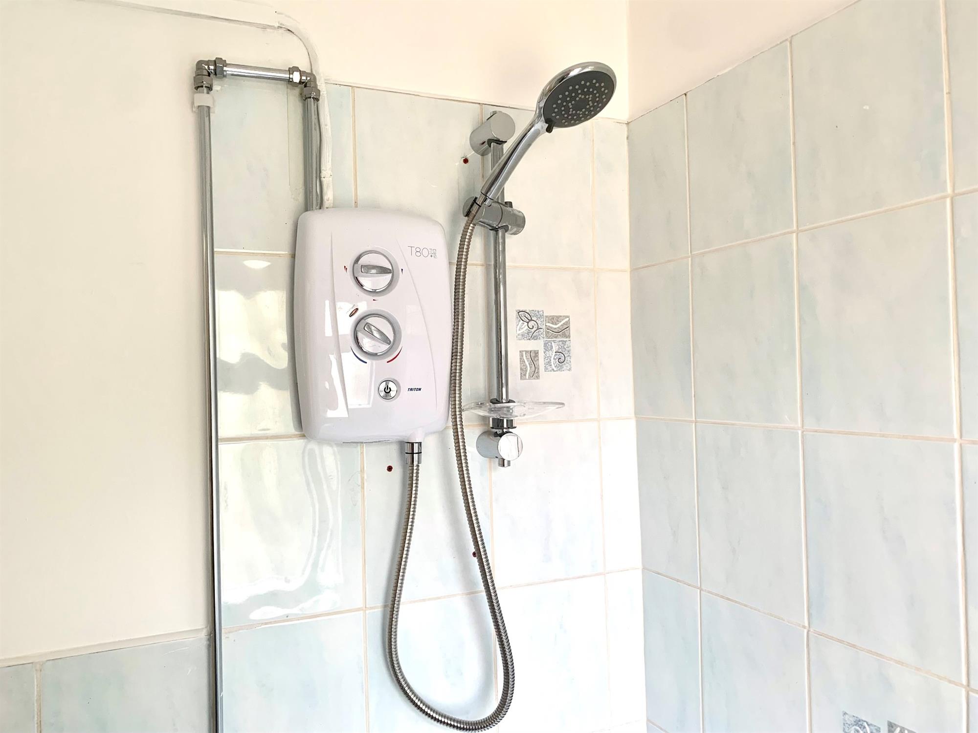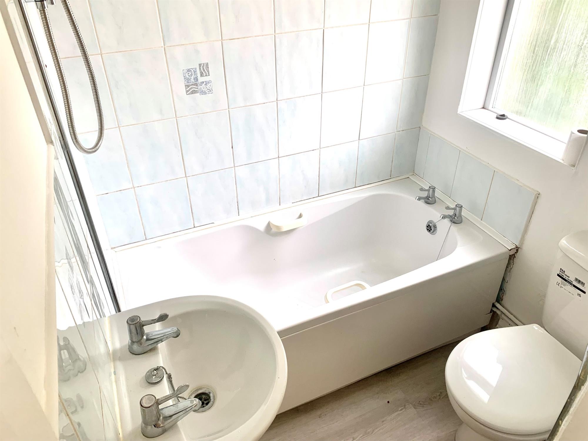 BATHROOM – White suite consisting of bath with electric shower over, sink and toilet. Window to front.
