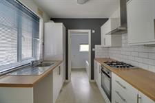 Smooth ceiling, inset spotlights, storage cupboard, door to garden, radiator, wood effect flooring.