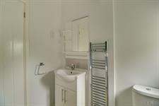 Smooth ceiling, two obscured double glazed windows, extractor fan, ladder radiator, bath with shower over, wash hand basin with vanity unit, WC, vinyl flooring.