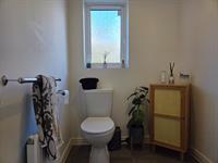Low flush WC, wash hand basin, radiator and frosted Upvc window to rear aspect.