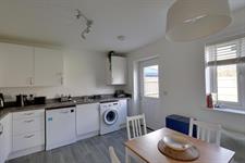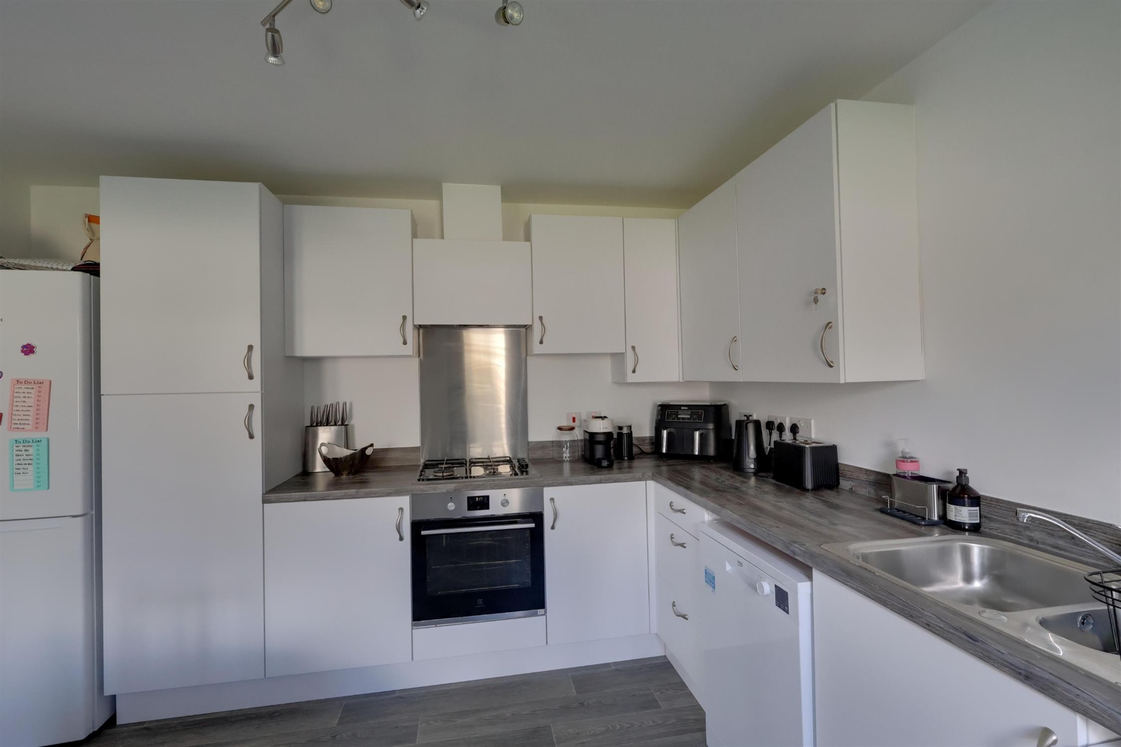 A fitted kitchen with a full range of eye, floor and drawer units with complementary work surfaces and inset one and a half bowl single drainer sink unit. Built-in electric oven and four ring gas hob with splash back and hood over. Plumbing and space for a washing machine, plumbing and space for a dishwasher and space for a fridge freezer, tall cupboard, vinyl flooring. Upvc double glazed door to the rear garden. Dining area with Upvc window overlooking rear garden.
