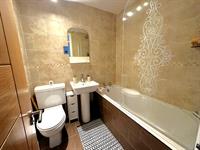 Comprising white suite of panelled bath with glazed shower screen and shower fitted over. Pedestal wash hand basin. Close coupled WC. Fully tiled walls. Ceramic tiled flooring. Extractor fan. Heated towel radiator.