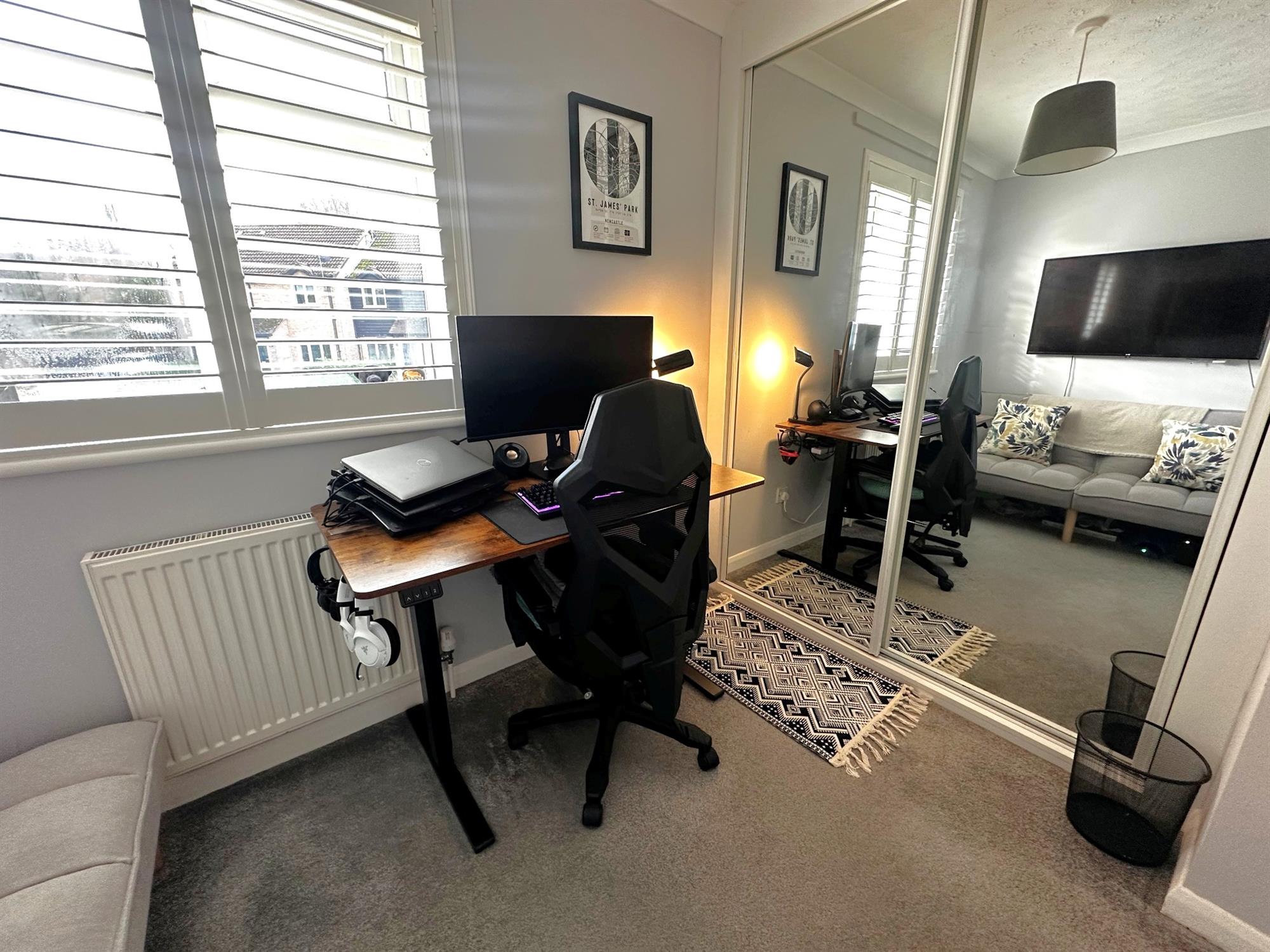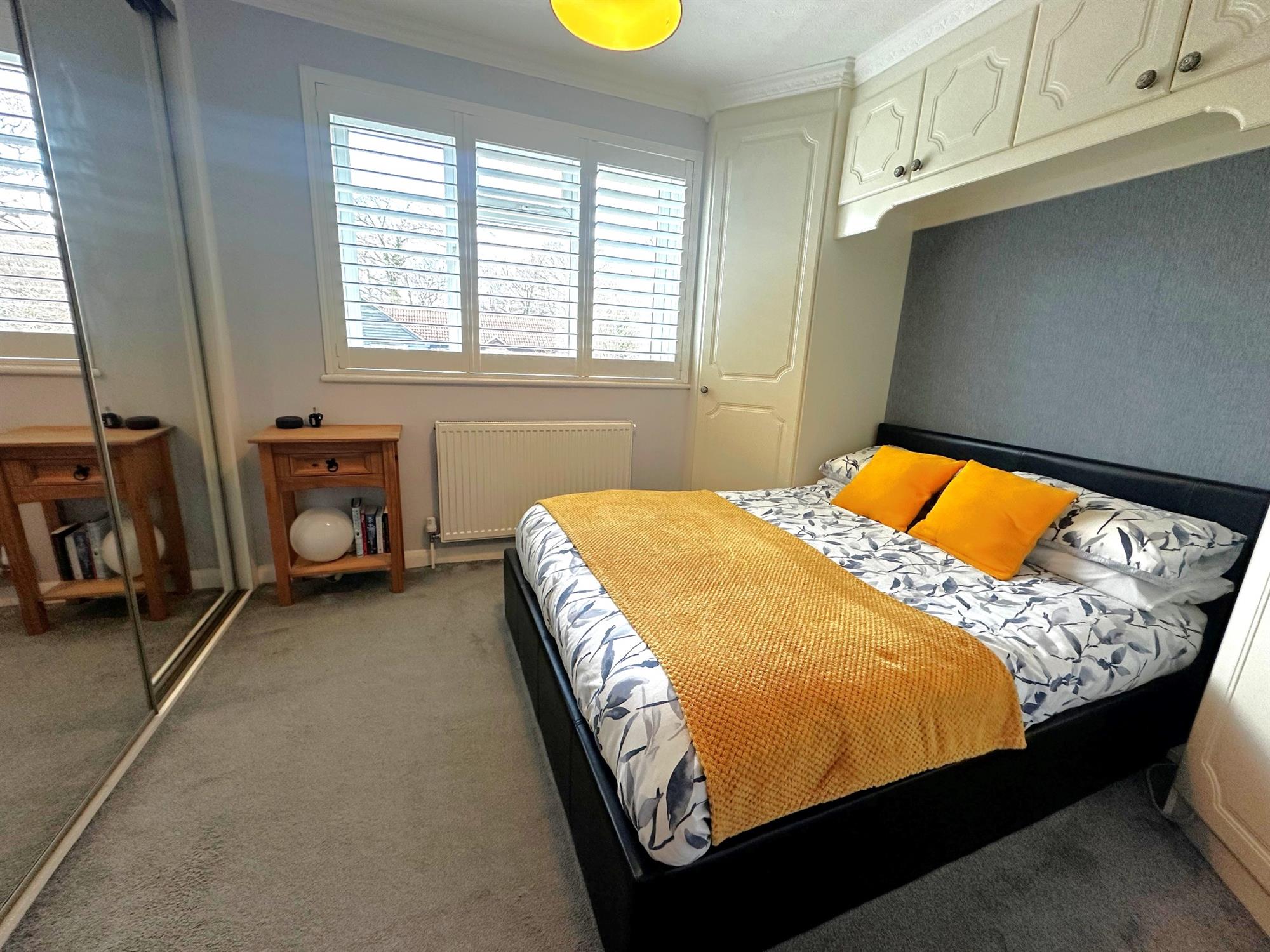 Window to rear aspect with fitted shutters. Range of fitted wardrobes. Radiator.