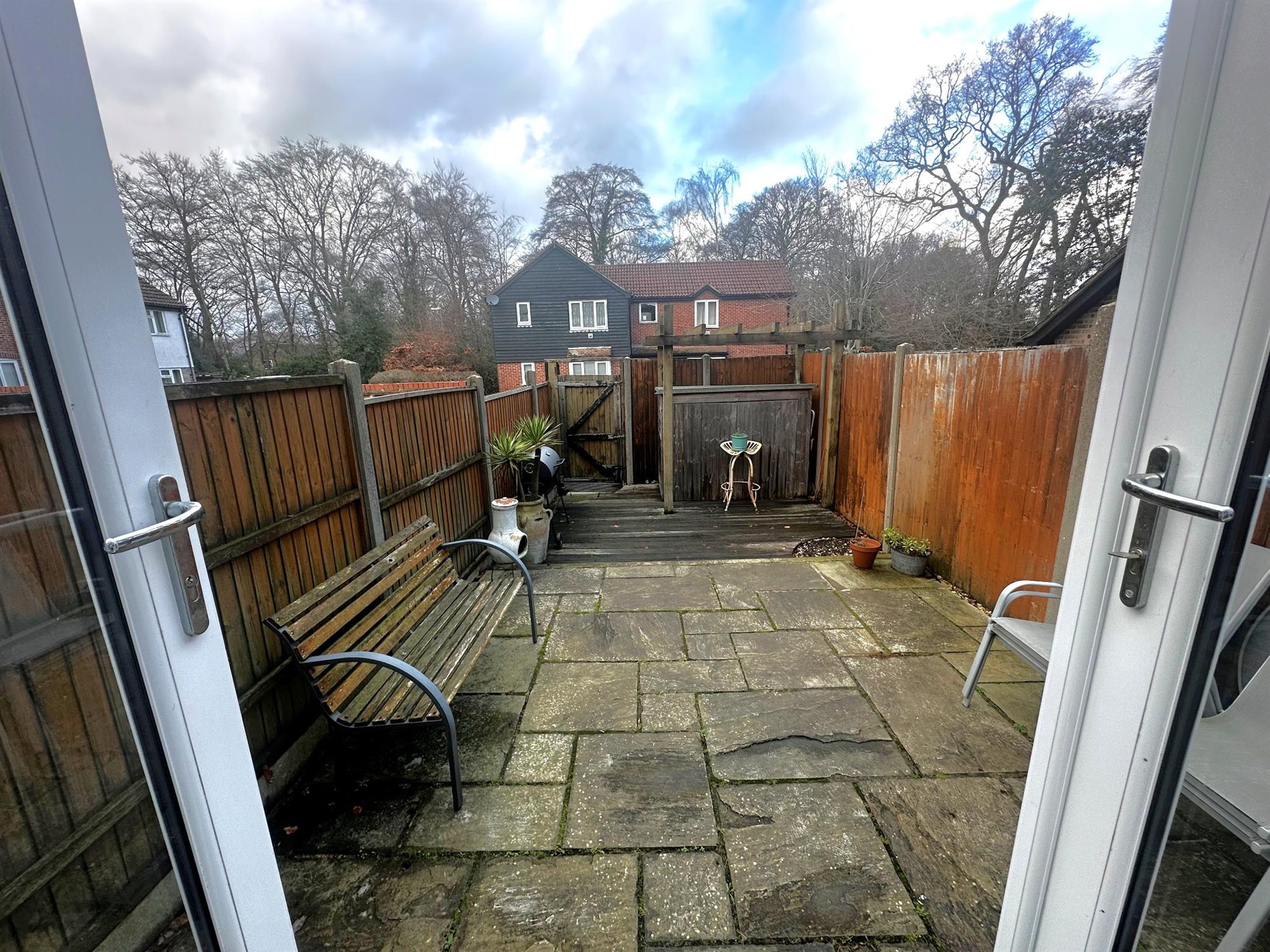 Fenced to boundaries with gate to rear parking space. Outside tap. Laid to patio.