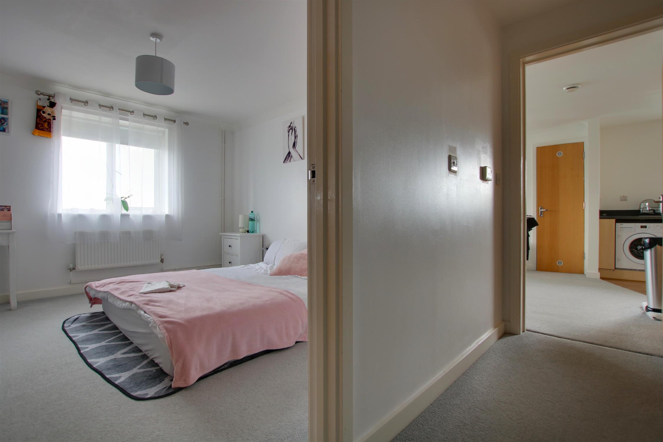 Smooth walls and ceiling. Doors to bedroom, bathroom and open plan kitchen/living room. Radiator. Multiple storage cupboards.