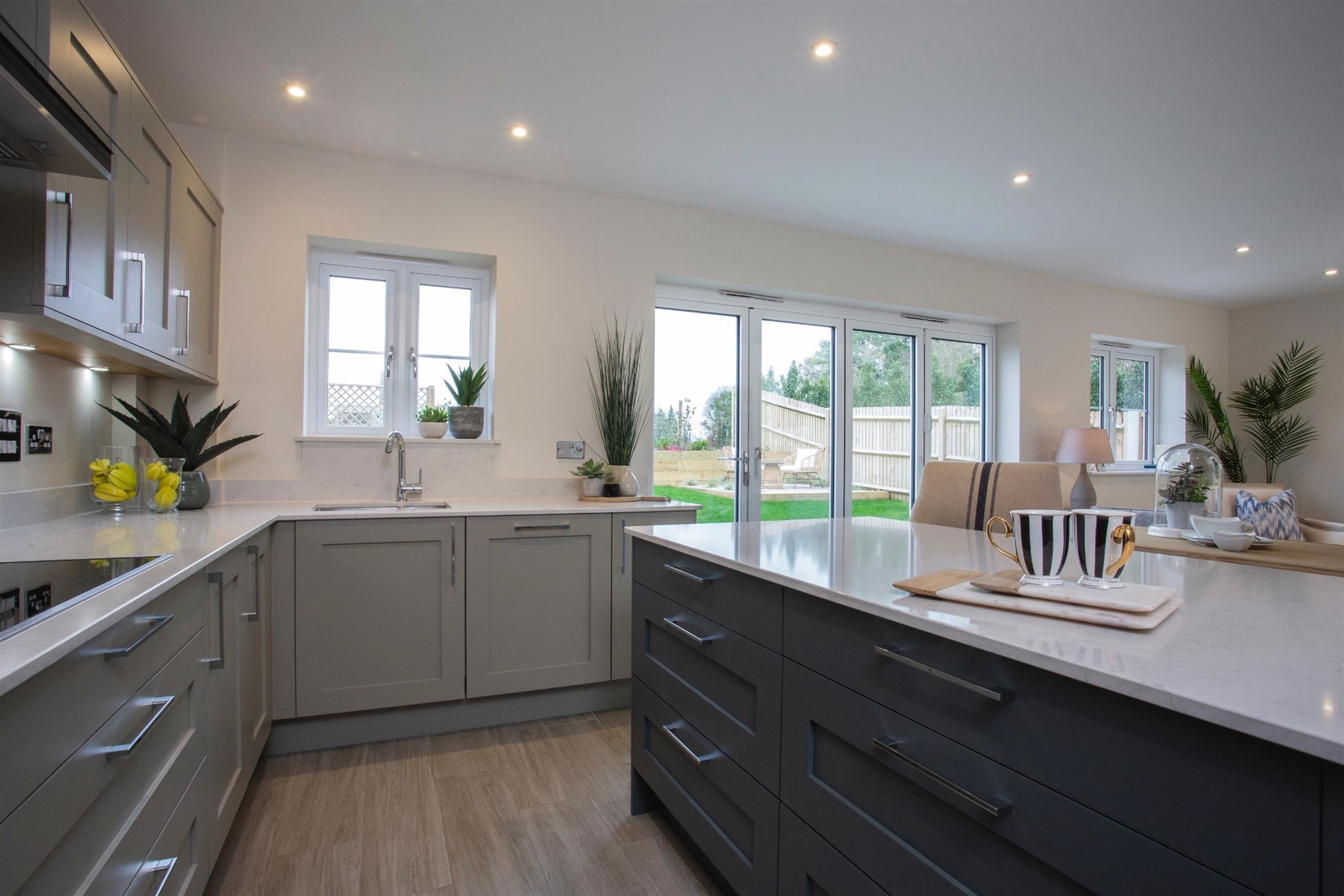 Kitchen cabinets are in a classic shaker style finished in rich heritage inspired colours, with composite stone worktops and a full range of quality appliances, completing the high end look. The overall impression is a space that is furnished rather than just equipped - one that will complement every lifestyle.