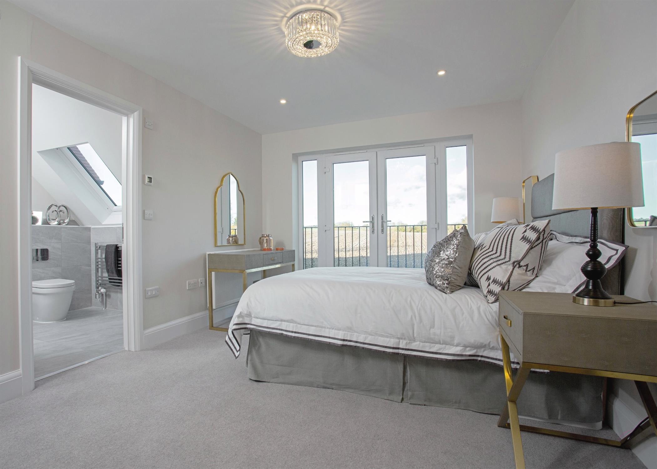 There is a cloakroom, off the entrance hall and a useful personal door to the integral garage, where there is also a utility area and additional storage. Upstairs the glorious farmland rear view can be enjoyed from the Juliet balcony in the lovely master bedroom suite, three further bedrooms, en-suite to the master bedroom and bedroom two. Family bathroom. Driveway, integral garage and enclosed rear garden.