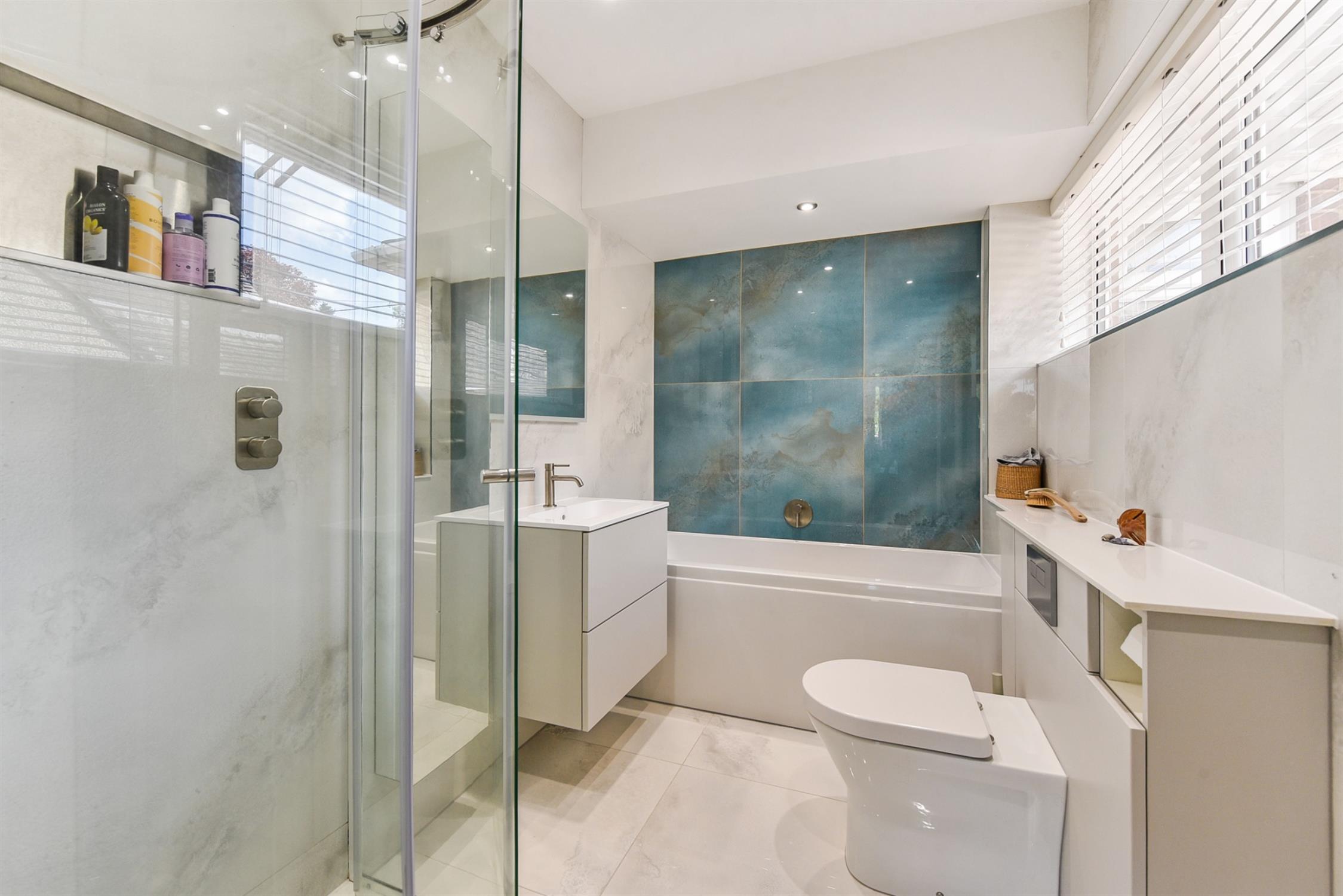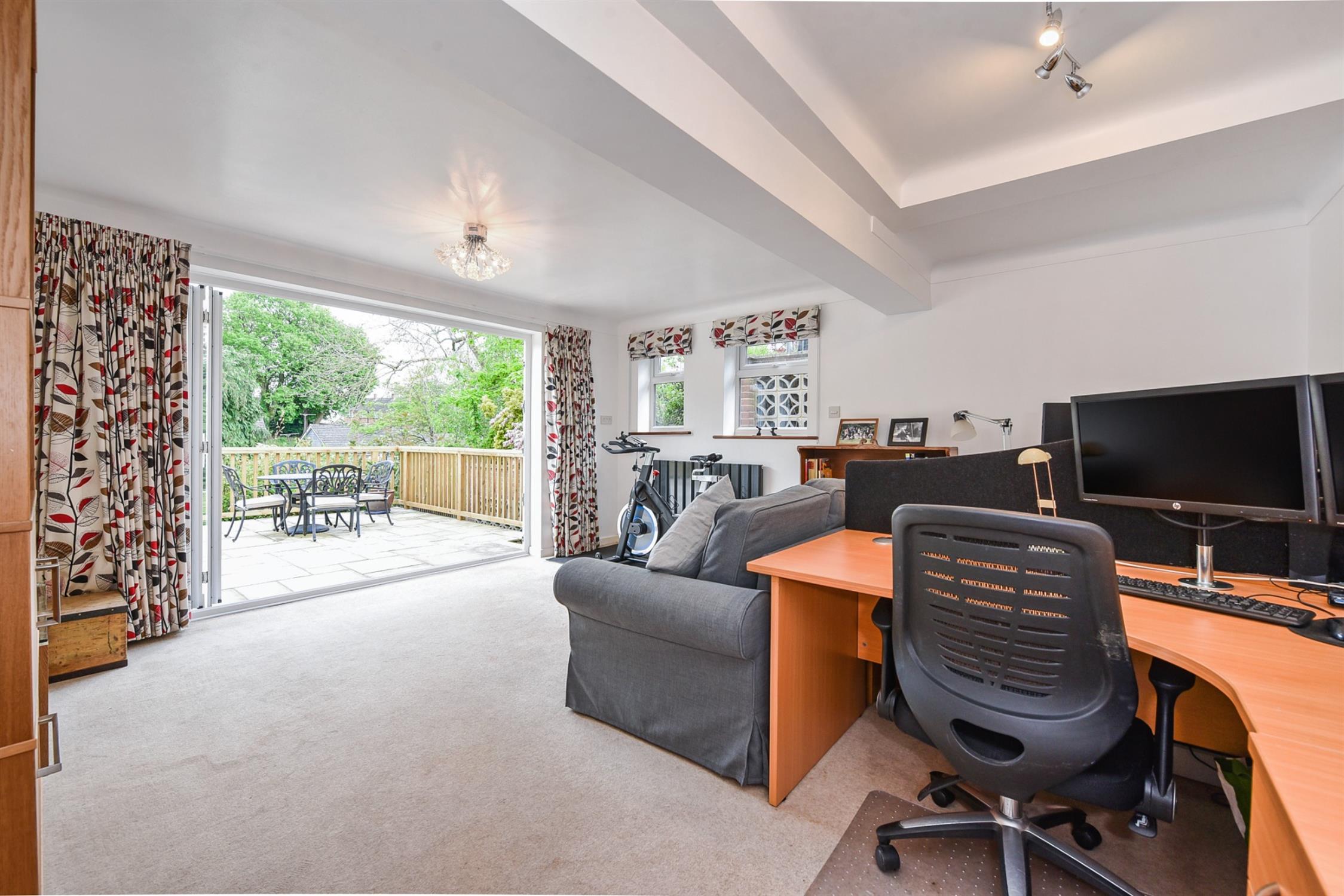 Stairs lead to the lower ground floor, which also offers an excellent degree of flexibility and potential. Currently, configured with a large utility and under house storage, a generous double bedroom with an en-suite bathroom and a large study/bedroom/reception room with bi-fold doors out onto a beautiful sandstone terraced patio. Facilities could be re-organised so that the kitchen was on this level, opening directly into the rear garden.