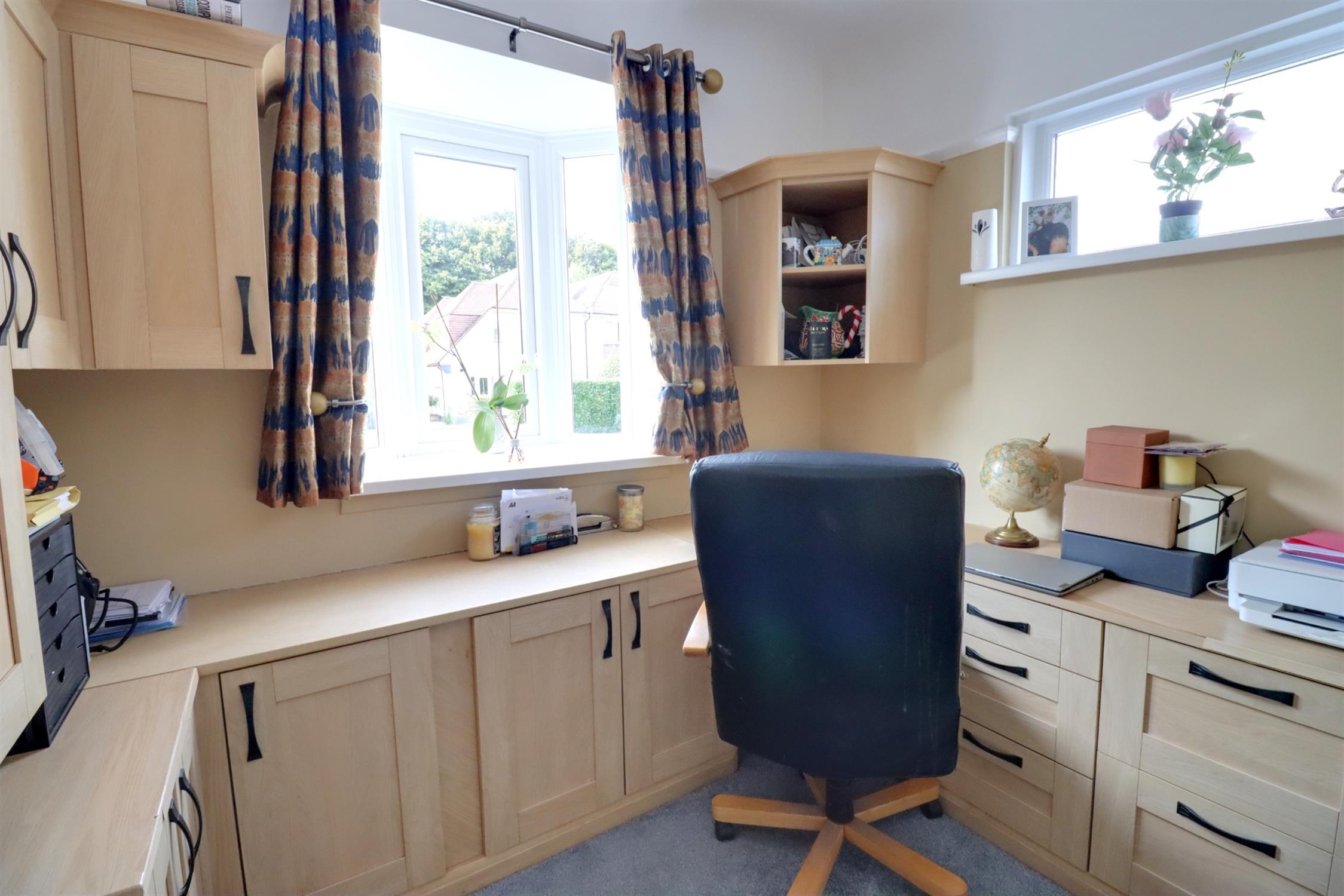 Front aspect double glazed bay window, side aspect double glazed window, radiator, built in storage, drawers and desk.