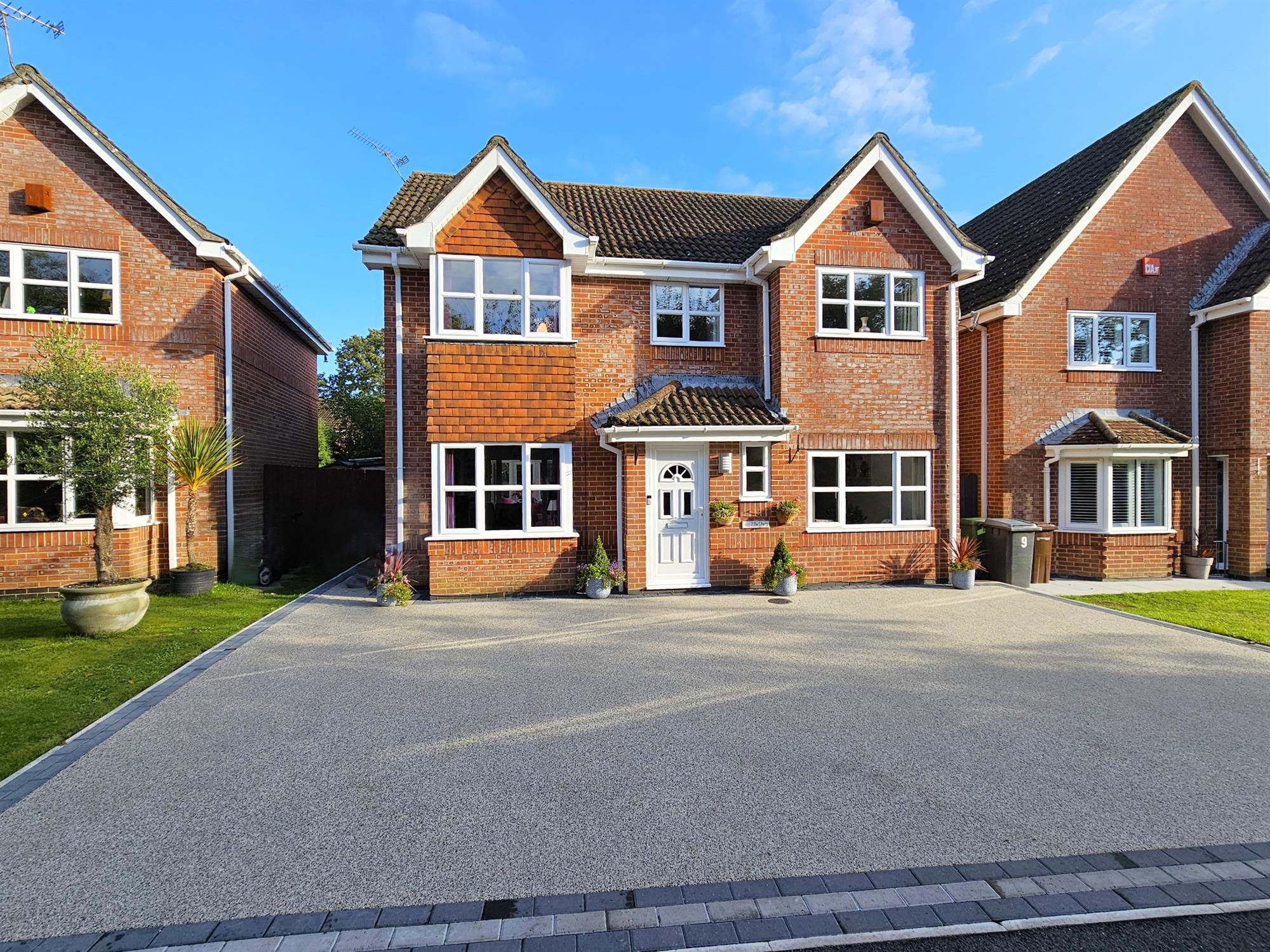 The front resin driveway provides off road parking for several vehicles.