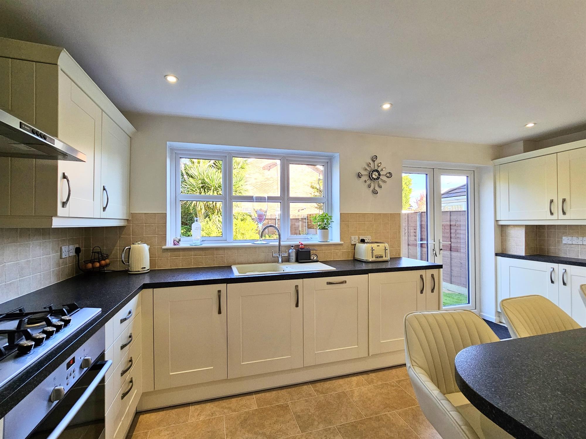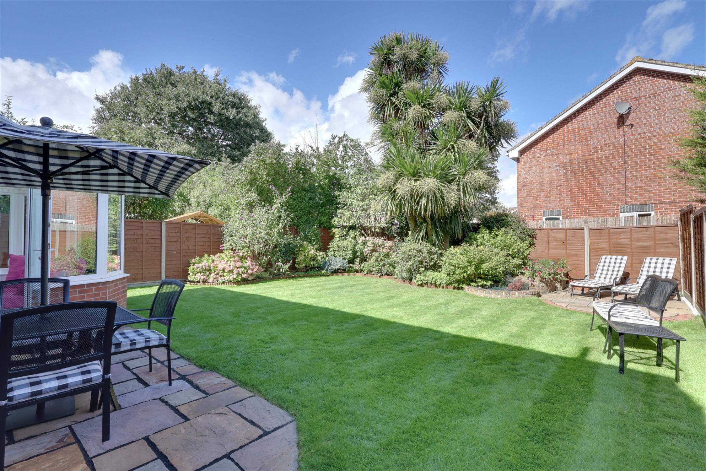 The rear garden is fully enclosed with gated side access, well stocked with mature trees and shrubs providing privacy. There are 2 patio areas to enjoy the sun any given time.