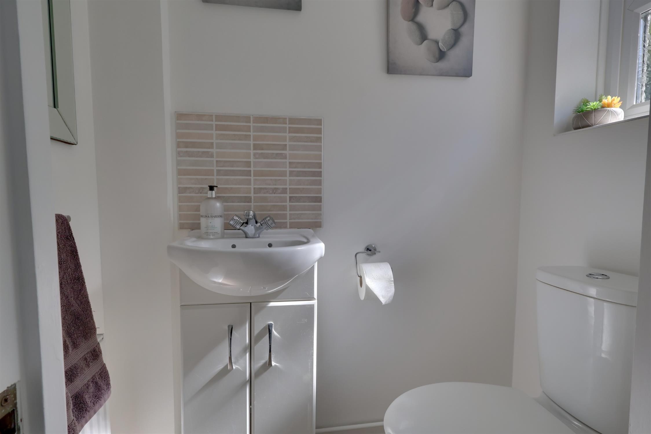 Upvc double glazed window to front aspect. Close coupled Wc and hand basin.
