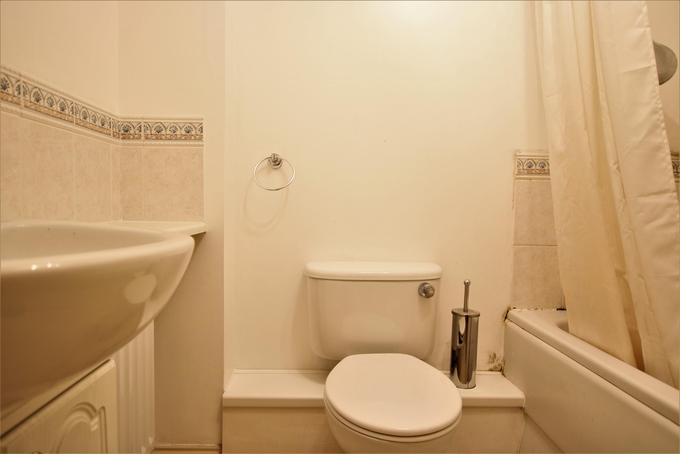 Textured ceiling. Radiator. Three piece suite comprising: shower cubicle, wash hand basin with storage under and low level w.c.
