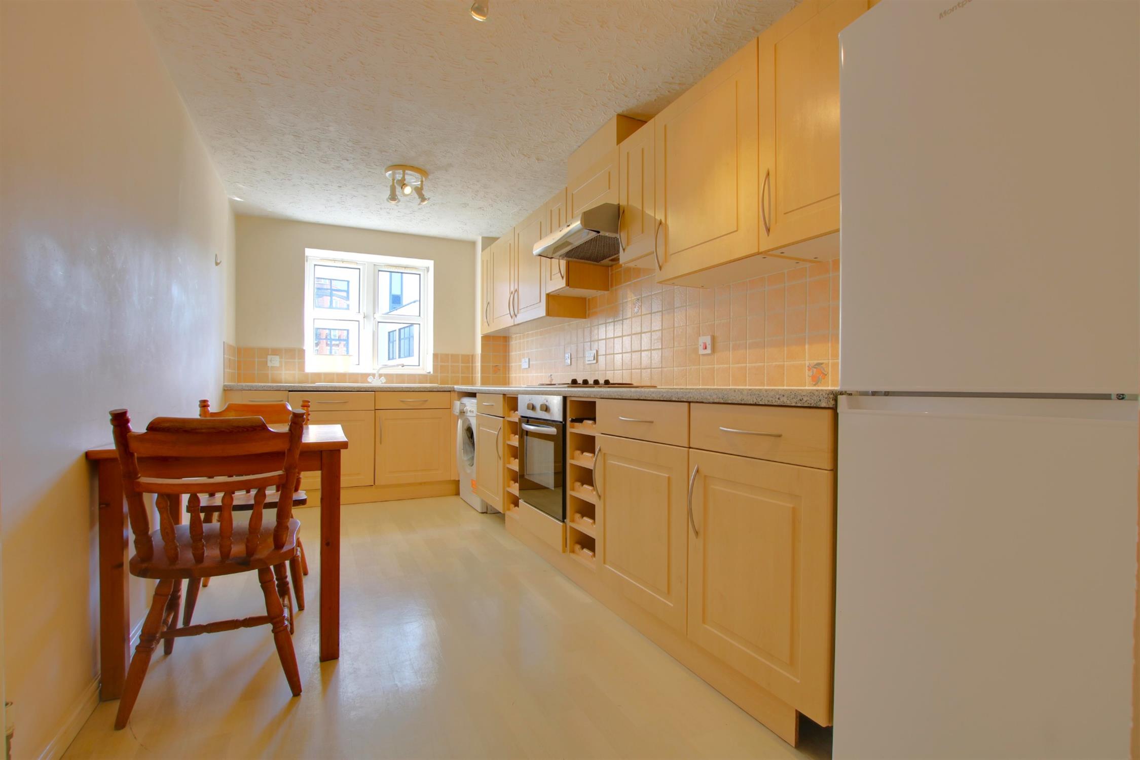 A range of wall and base cupboards with work surfaces over. One and a half bowl sink with drainer. Four ring electric hob with extractor hood over. Integrated oven. Plumbing for washing machine. Double glazed window.