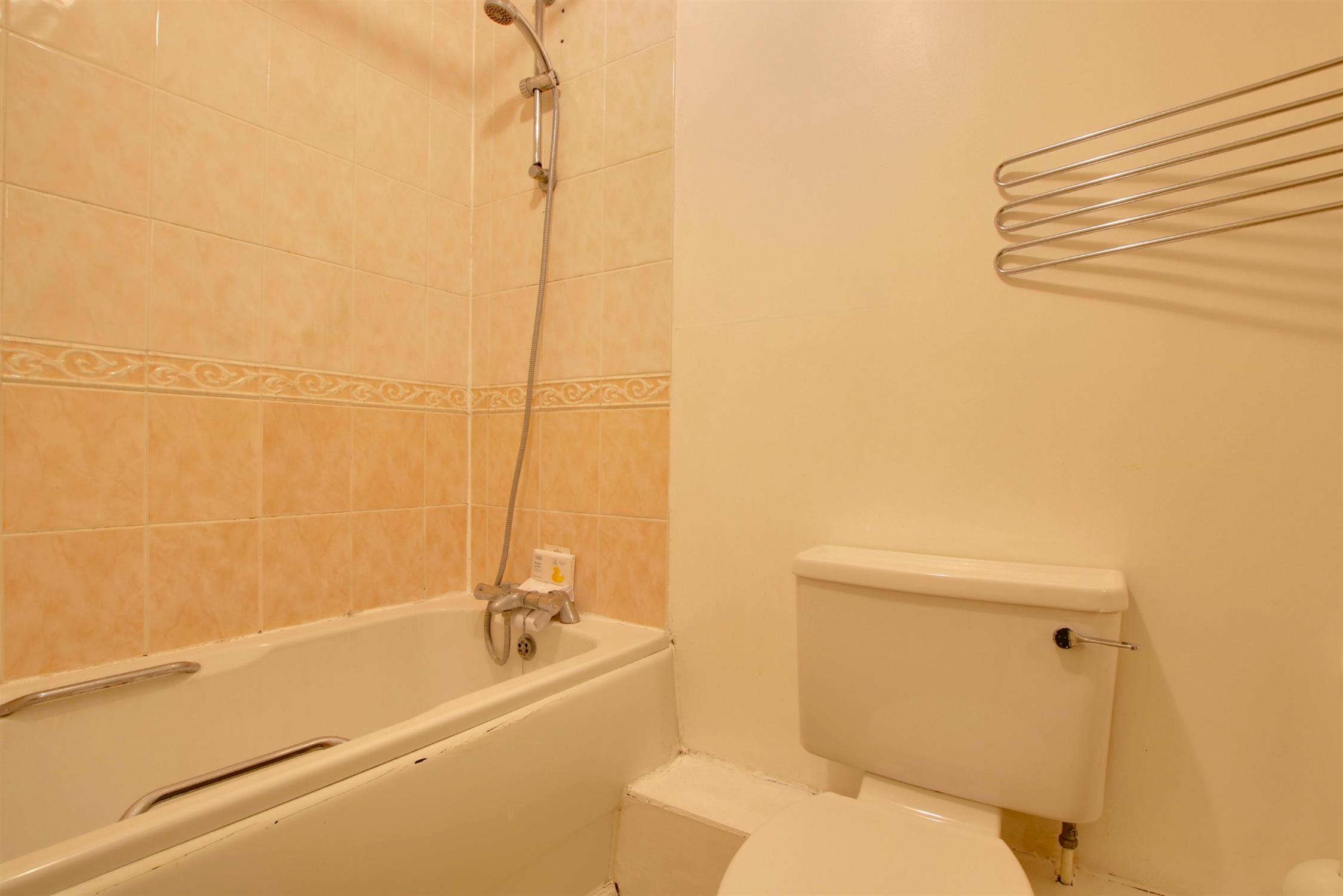 Panelled bath, w.c. and ceramic wash basin with cupboard under. Tiled flooring. Extractor fan. Radiator.