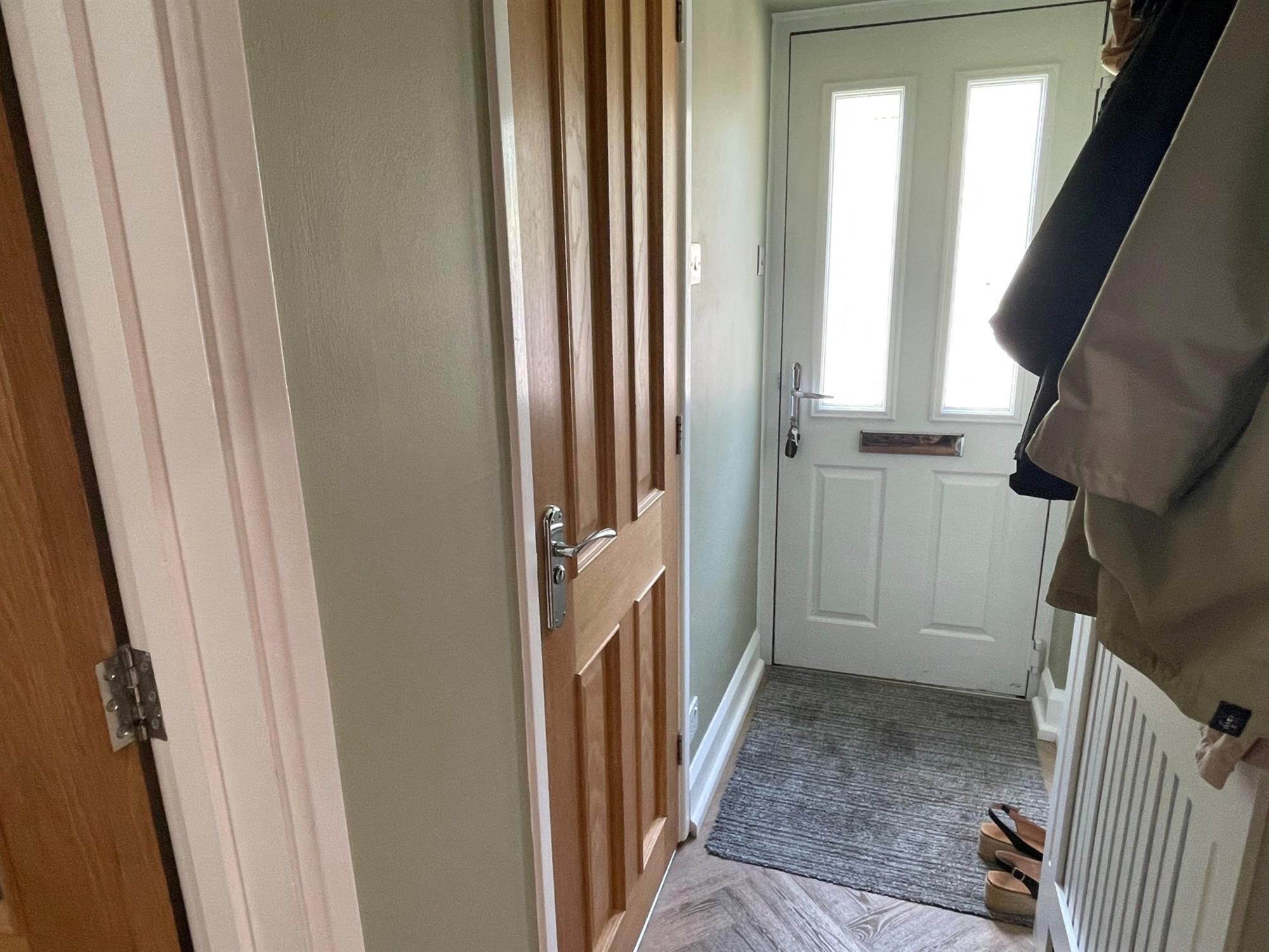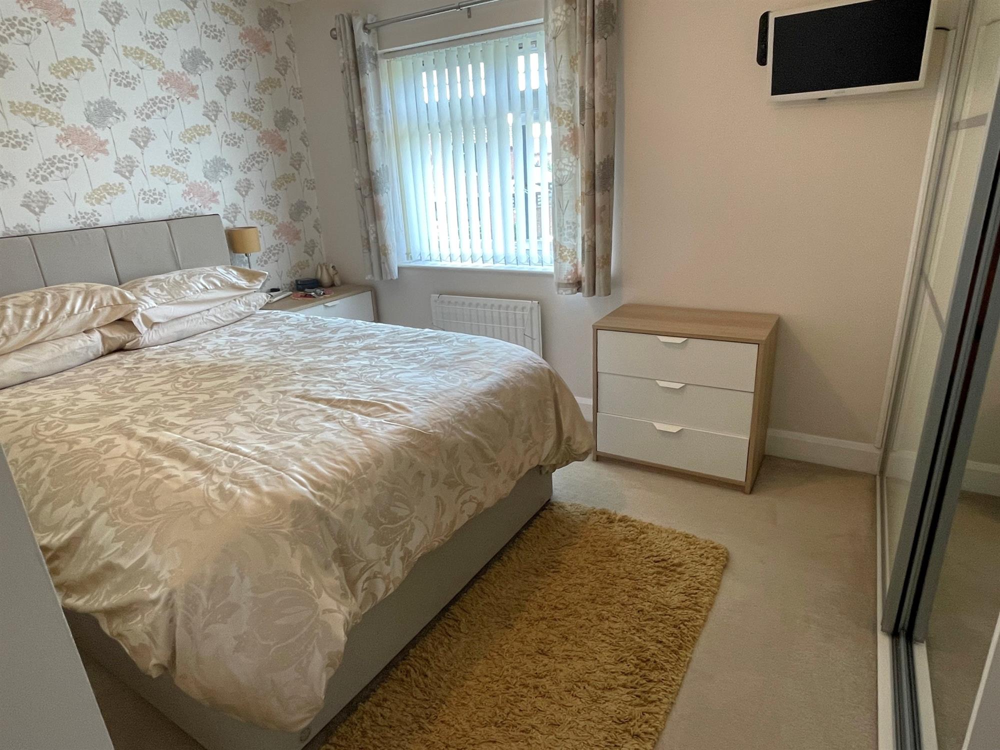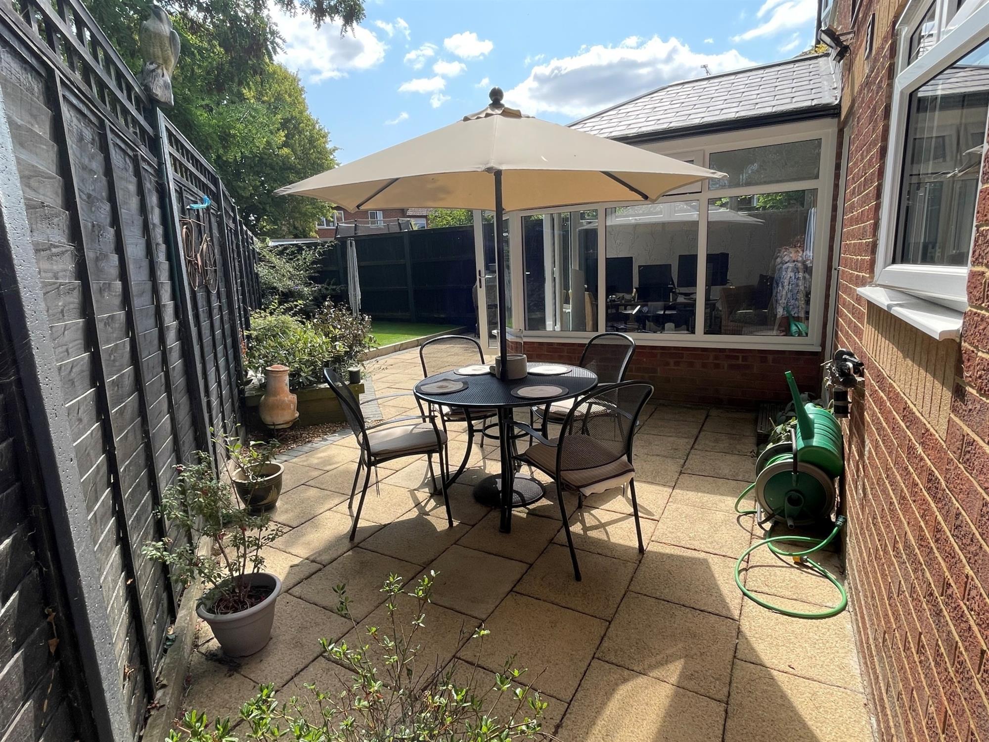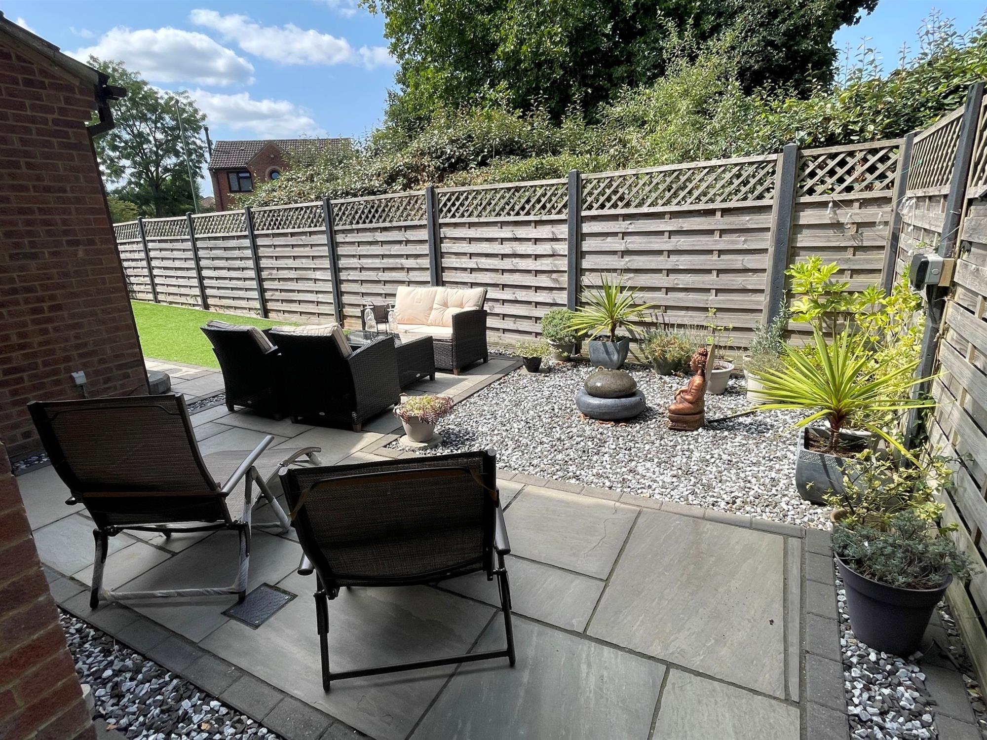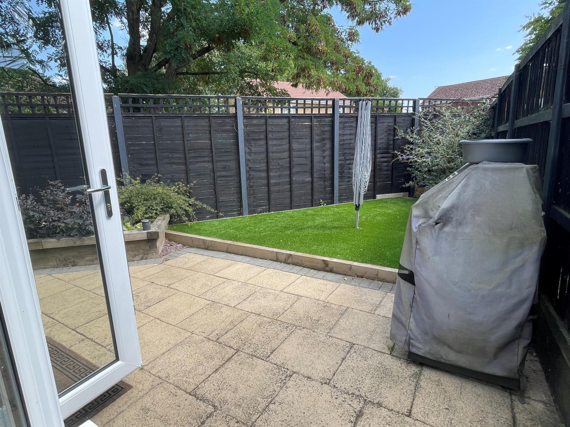The front garden is fenced to boundaries. Laid to artificial lawn. Paved patio area. Access to side.