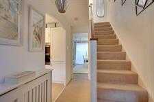 Accessed via glazed composite front door with canopy over. Textured ceiling. Stairs to first floor with storage cupboard under. Radiator.
