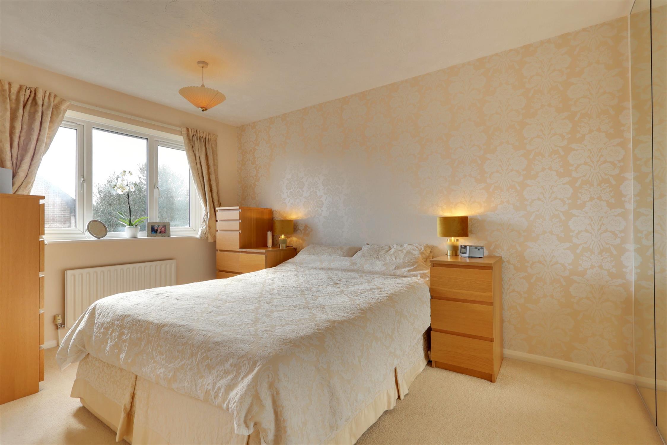 Textured ceiling. UPVC window to front aspect. Radiator. Built-in triple wardrobes with shelving and hanging rail.