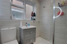 Double glazed window to the side aspect. Smooth ceiling with inset spotlighting. Extractor fan. Modern suite comprising; large walk-in shower area. Wash hand basin with storage beneath. Low level WC. Tall modern radiator. Tiled walls. Luxury vinyl tiled flooring.