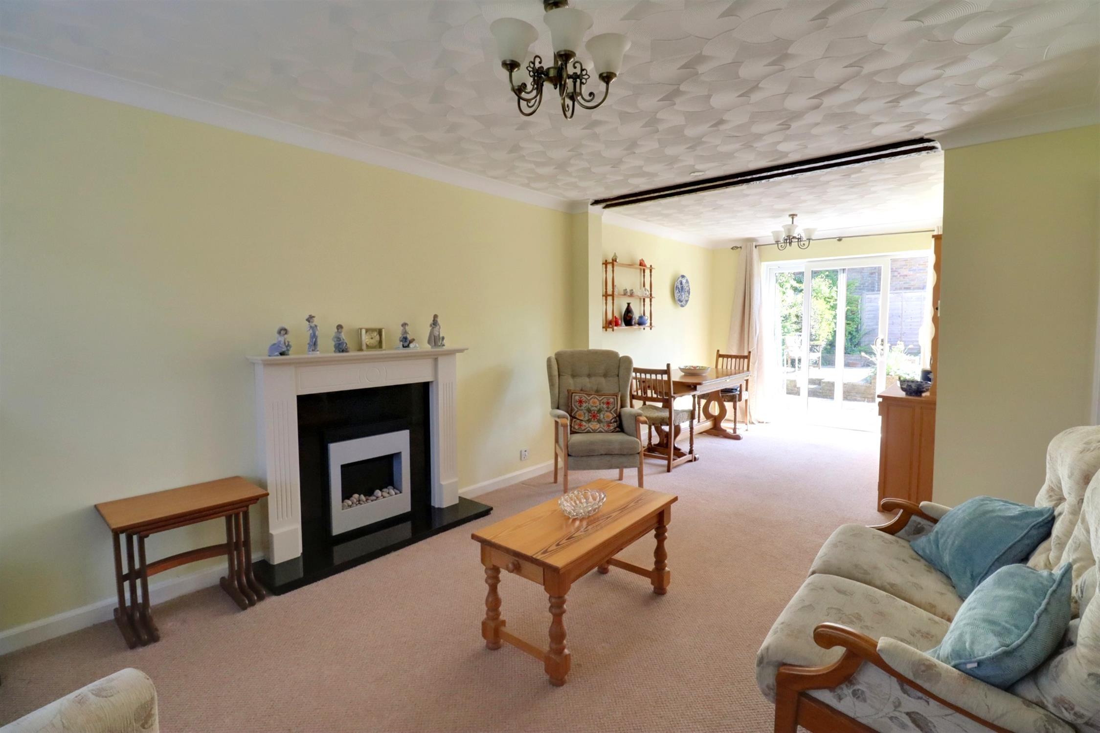 Front aspect double glazed lead light bay window, electric fire with surround, radiator, open aspect leading to the dining room, door to the kitchen.