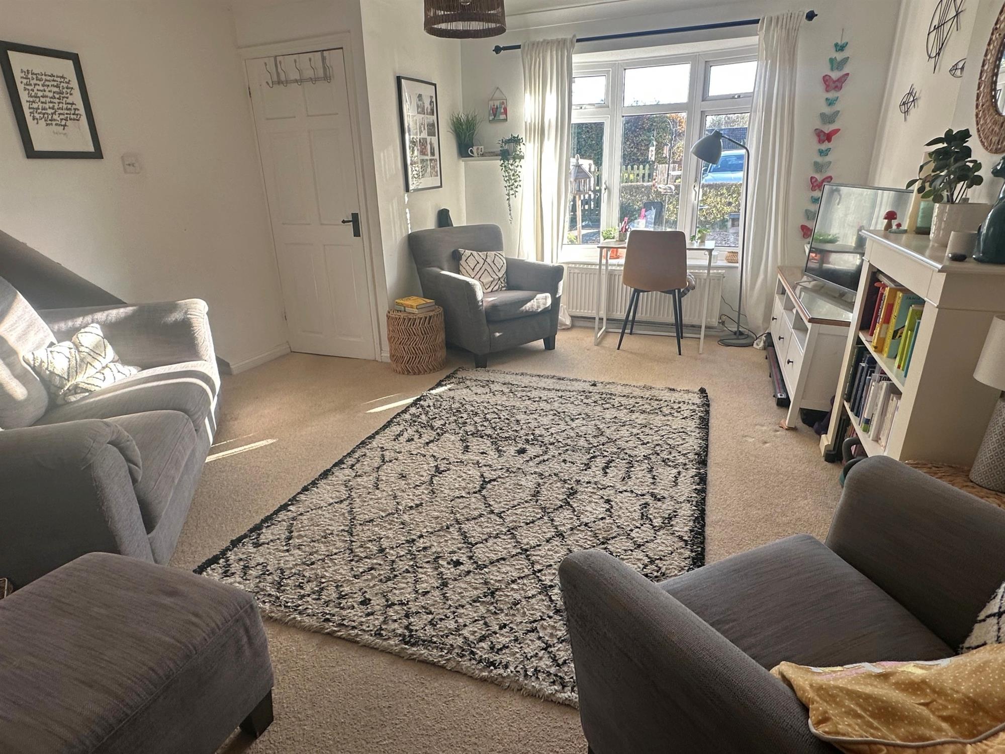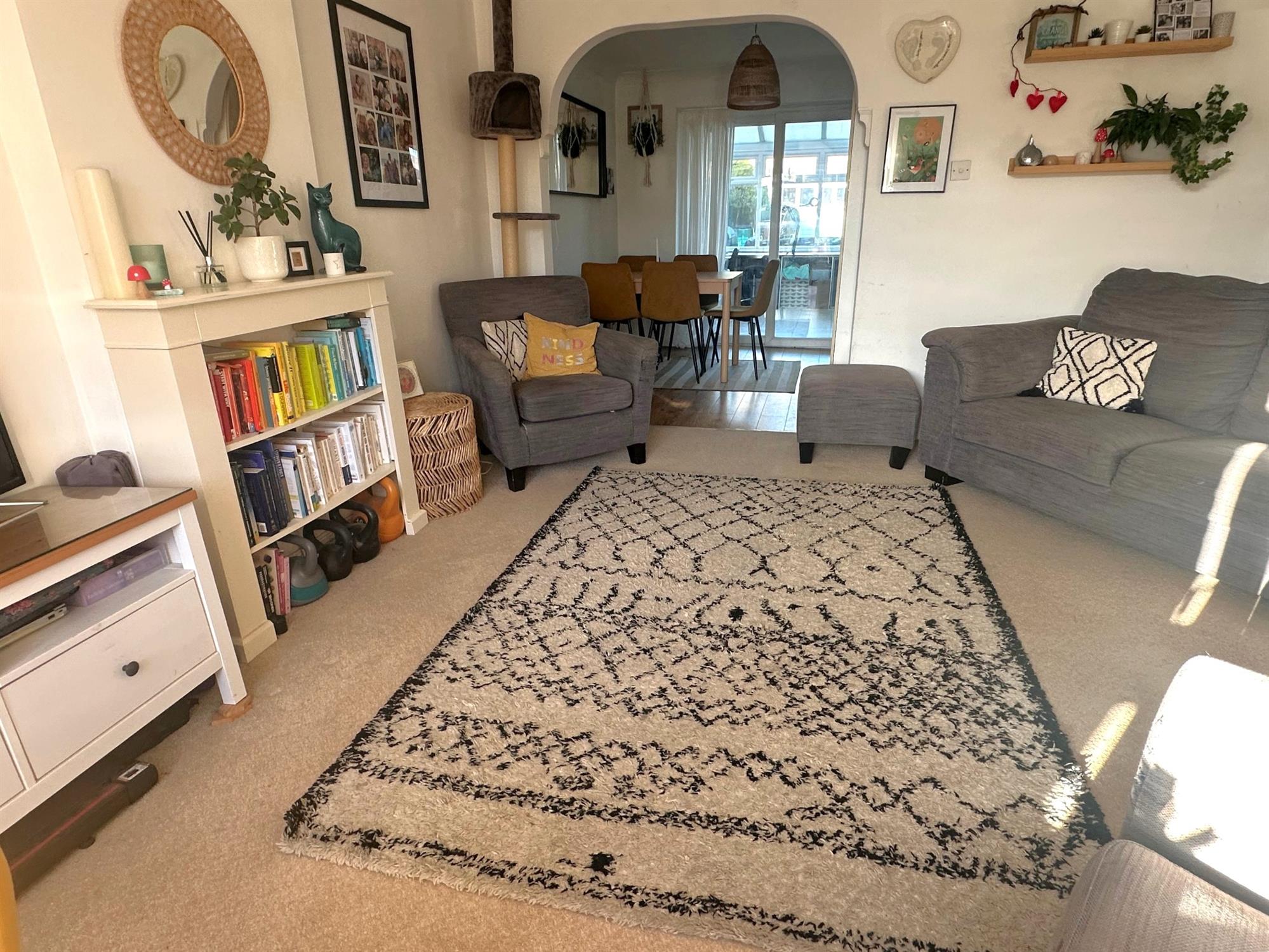 UPVC double glazed bay window to front aspect. Under-stairs storage recess. Radiator. Opening to: