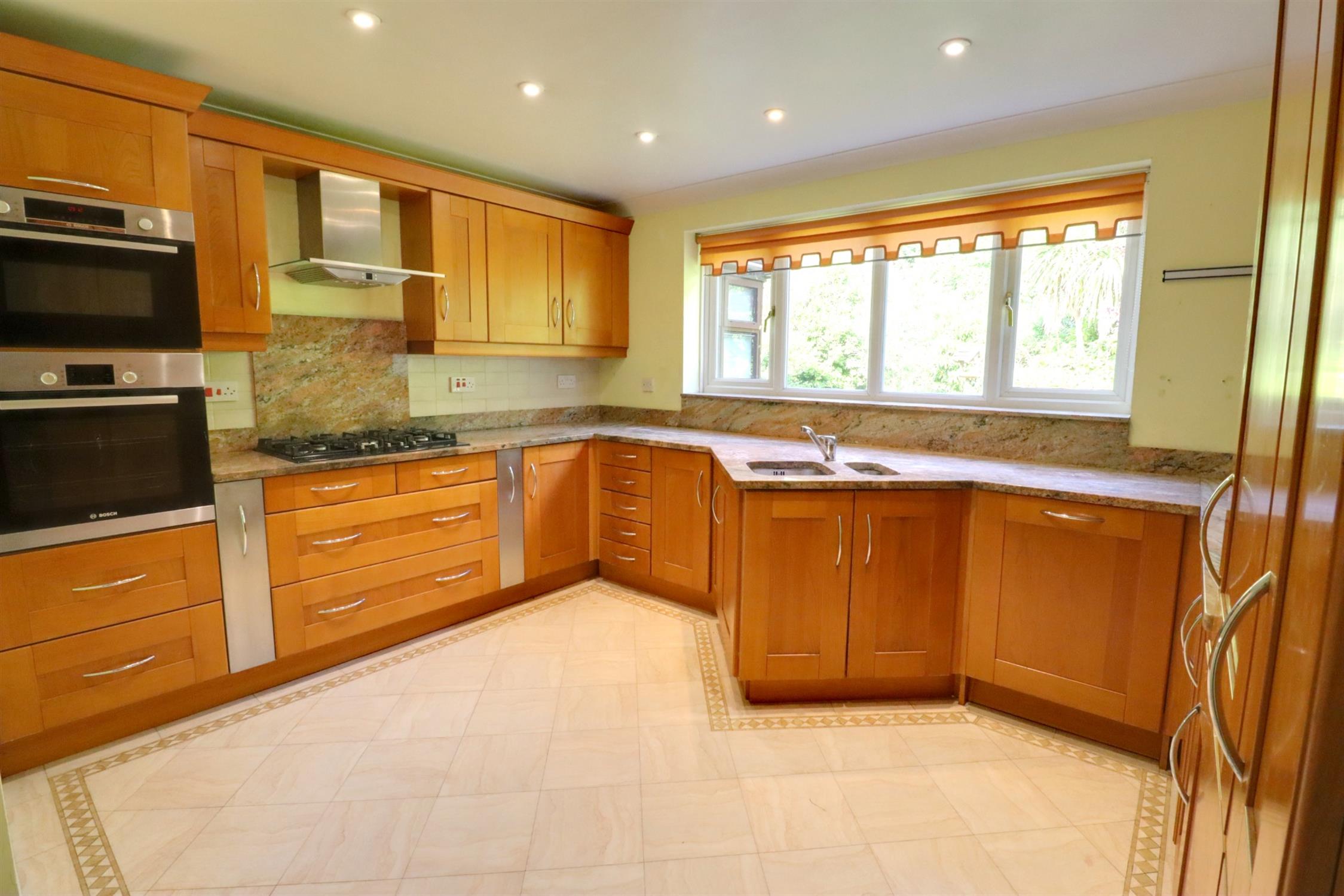 Fitted with a range of wall and base units with worksurfaces over, integral electric double oven and five ring gas hob with extractor hood over, inset one and a half bowl sink unit and drainer, tiled flooring, radiator, rear aspect double glazed window, doors to the utility room and to the study/breakfast room.