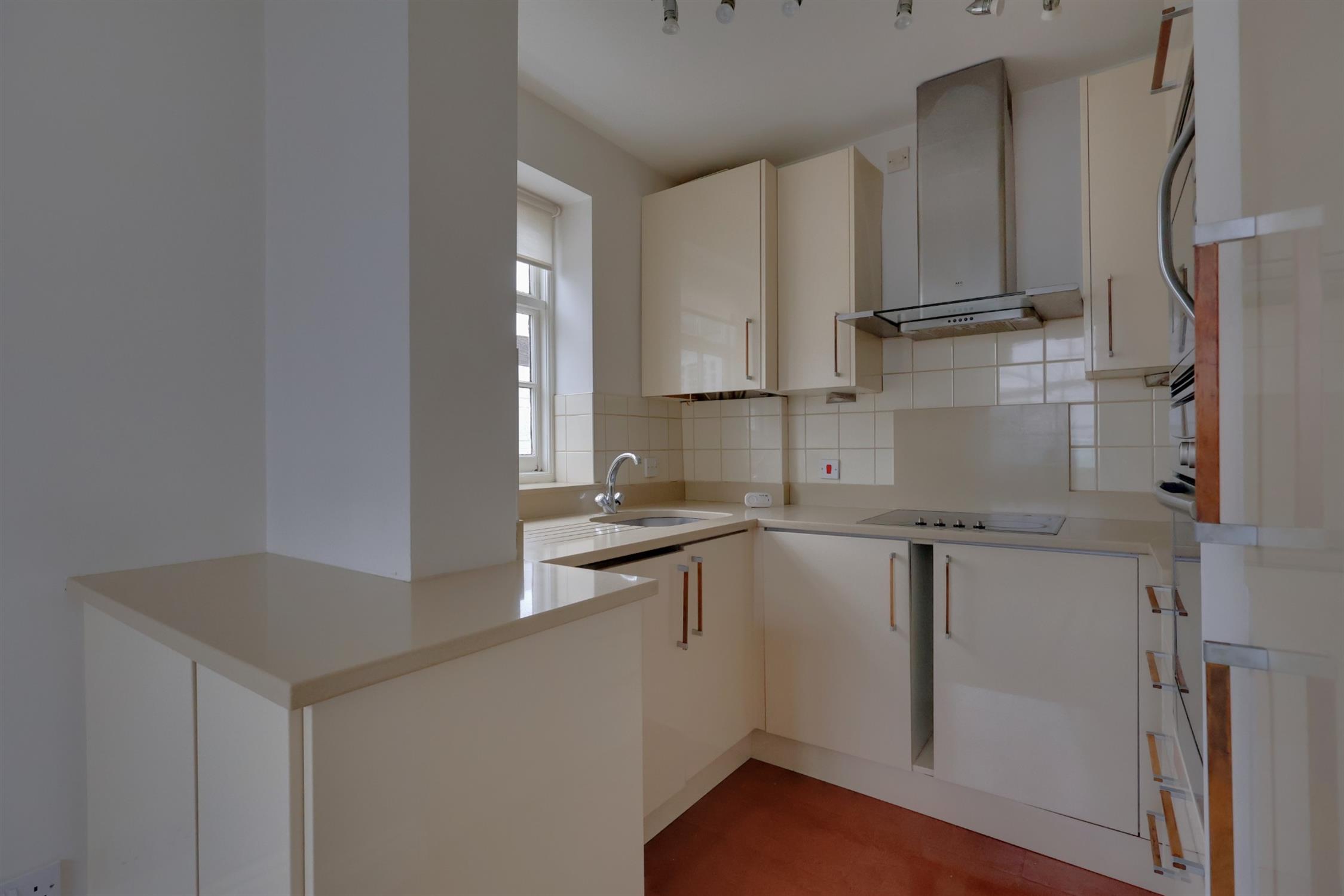 Single glazed window to front elevation Base cupboard housing the meters. Radiator. Base cupboard with hardtop work surface. Open plan to the :-