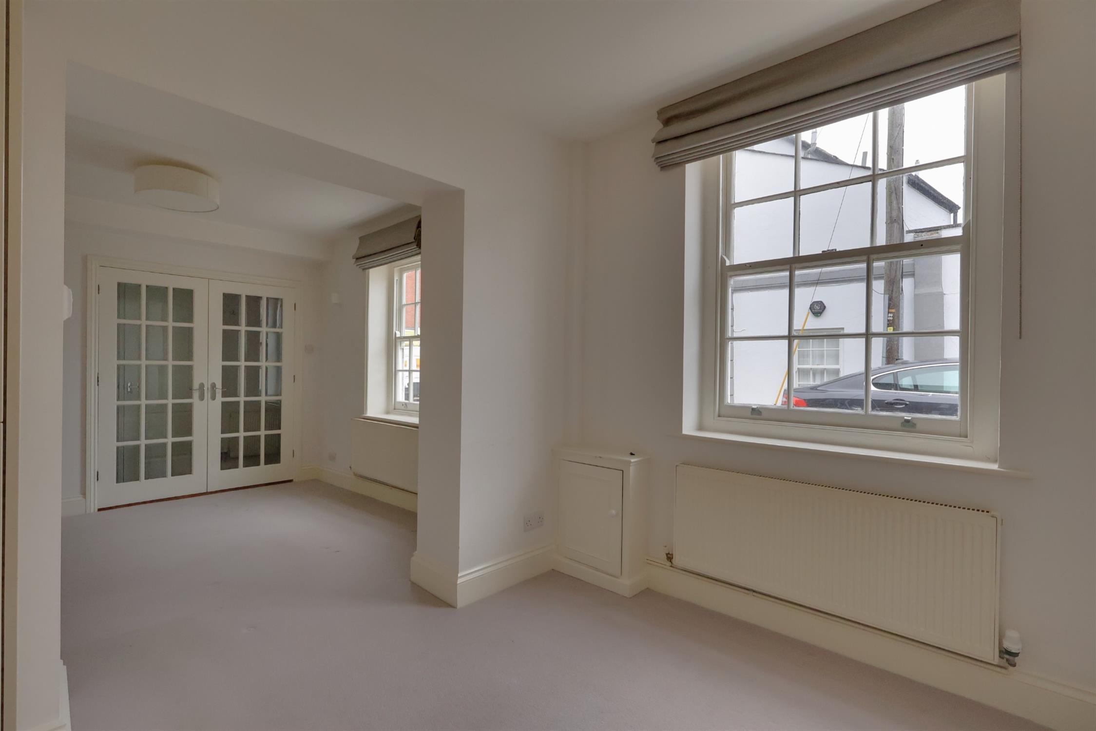 Single glazed sash to front elevation. Two radiators. Stairs rising to first floor accommodation. Door leading to side access. Built in cupboard. Open plan to the :-