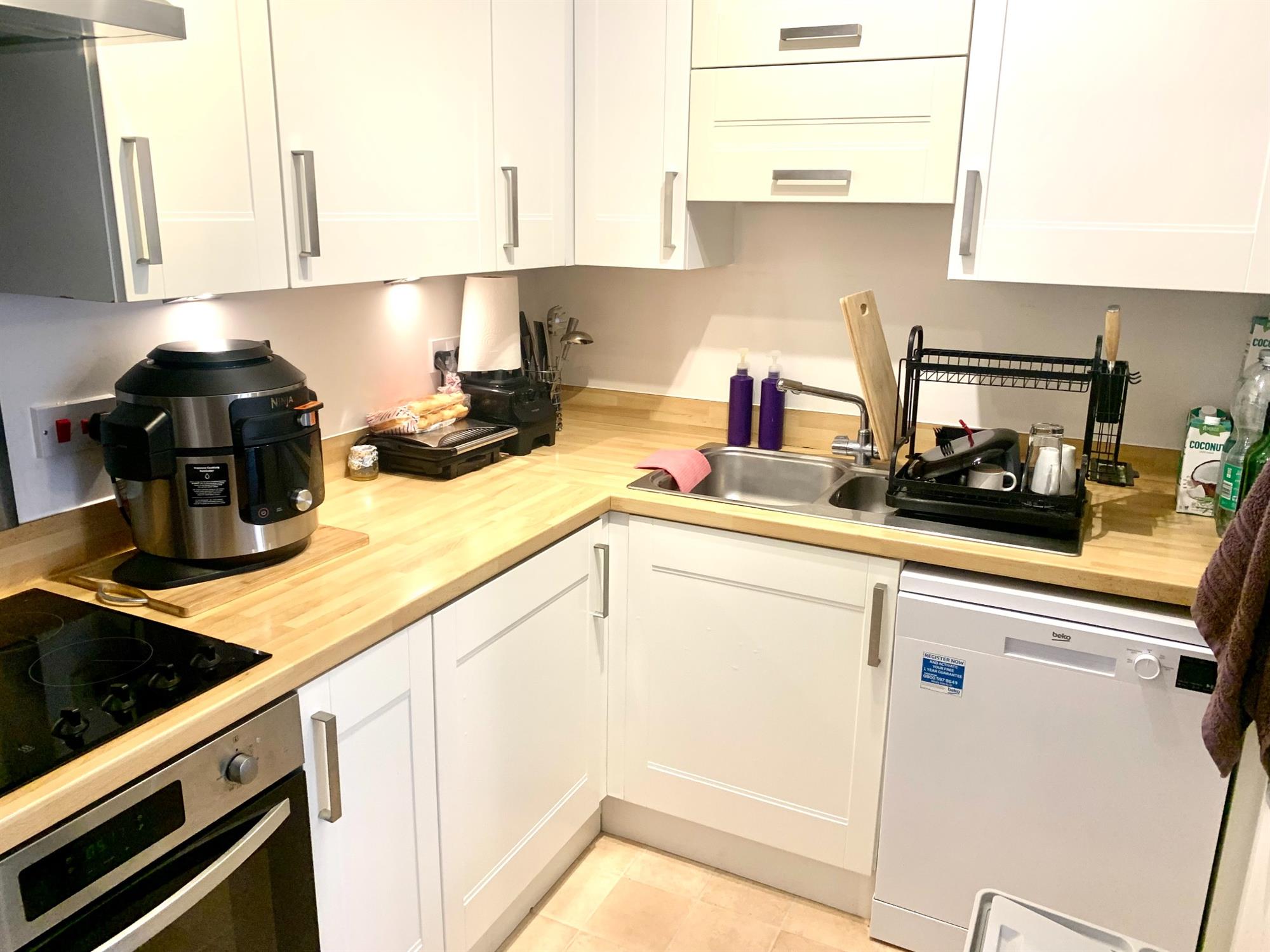 KITCHEN – Modern wall and base units. Appliances consist of: electric hob, electric oven, dishwasher, with door and window to garden. Kitchen appliances consist of fridge/freezer, integrated washing machine, electric oven, electric hob, microwave and dishwasher.